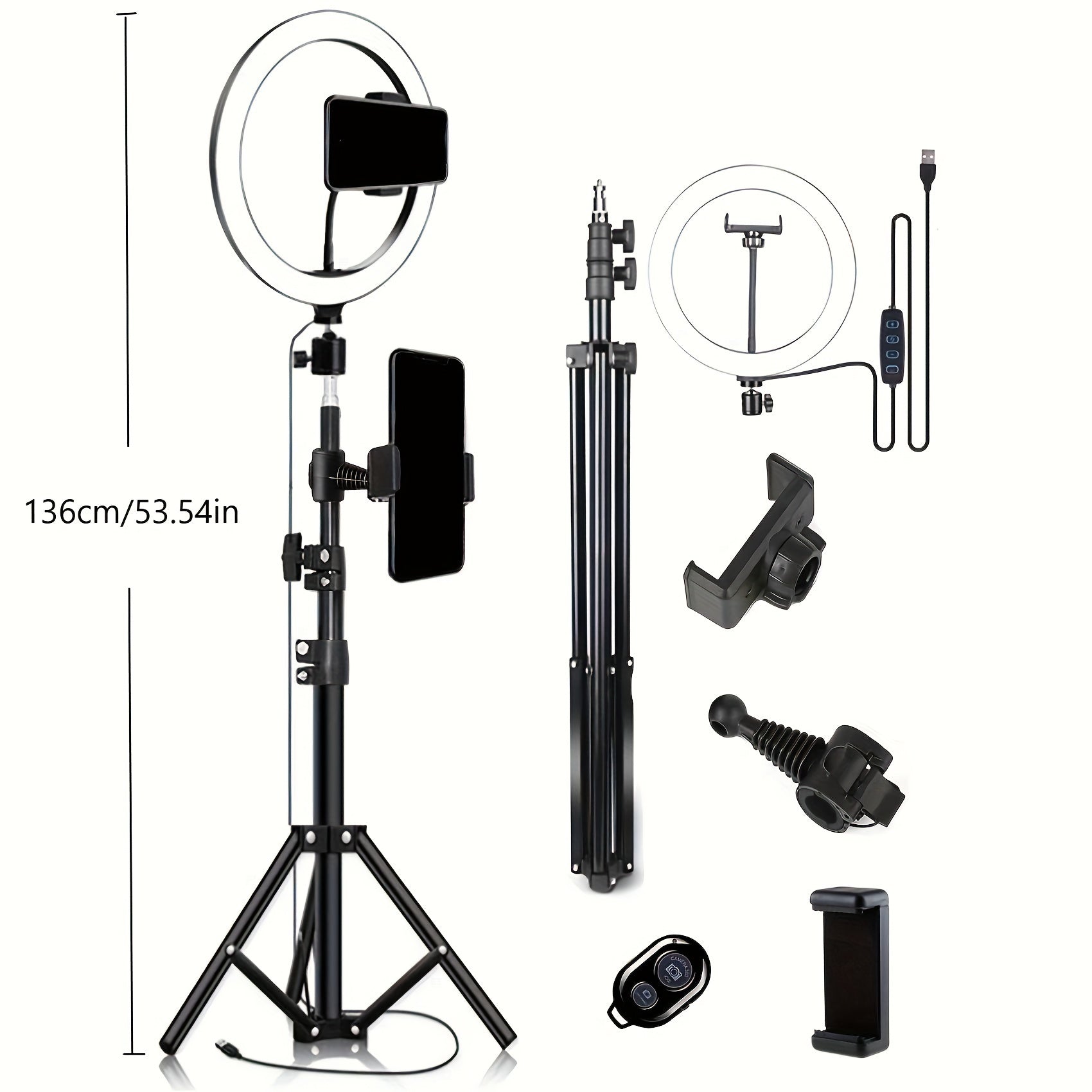 53.54-Inch Selfie Ring Light with Tripod Dual Phone Holders 3 Color Modes 12 Brightness Levels USB Powered