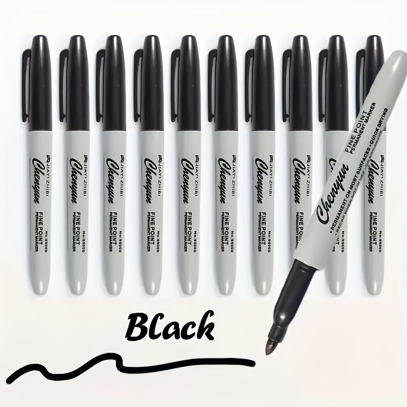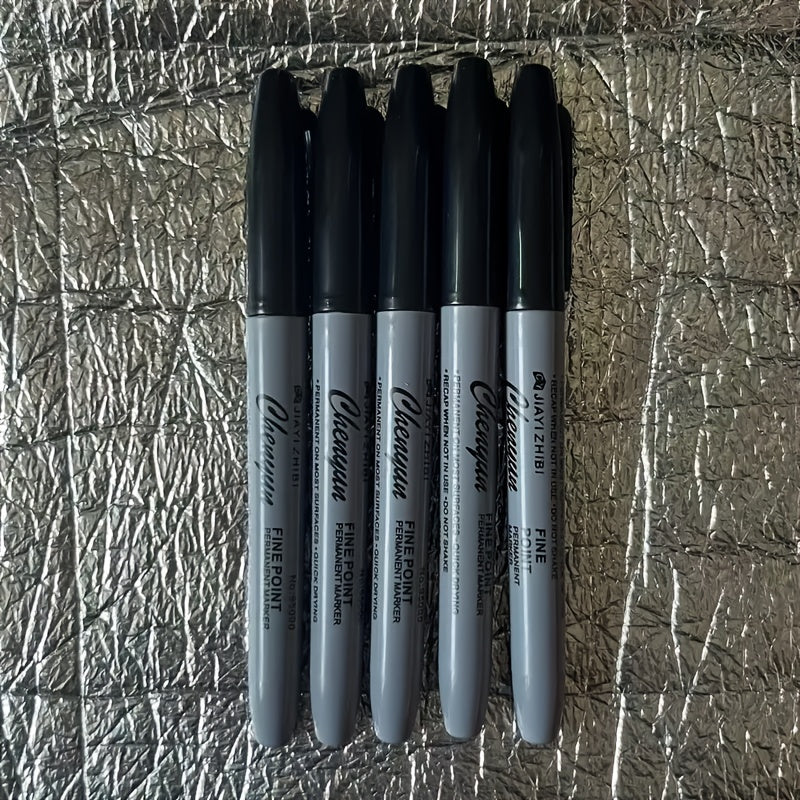 5Pcs Waterproof Fine Tip Markers Black Permanent Dry Erase Office School