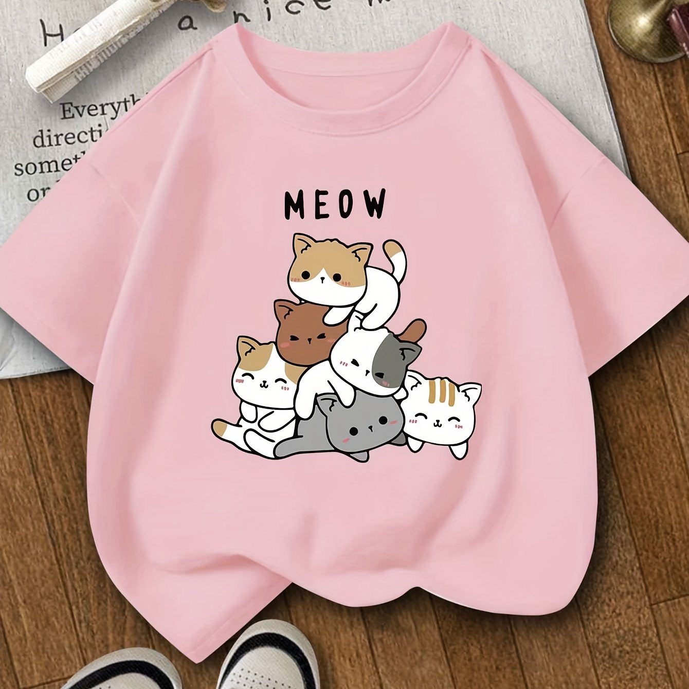 Girls Summer Knit T-Shirts with Animal Prints, Round Neck, Elastic, Unisex Fit for Ages 8-14