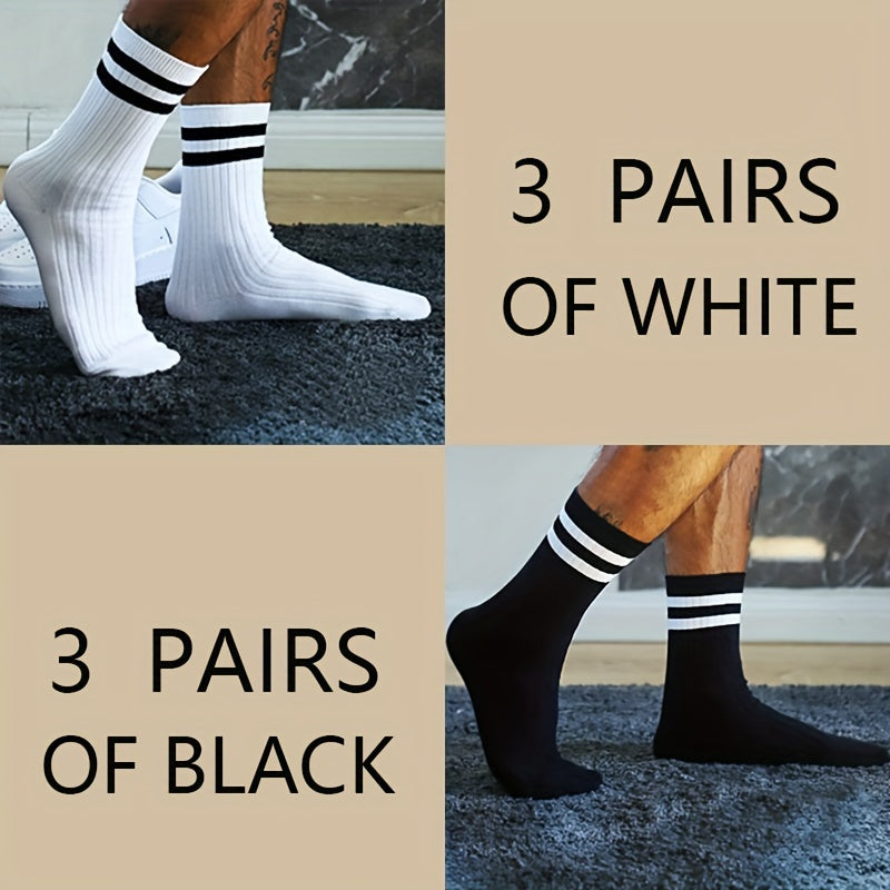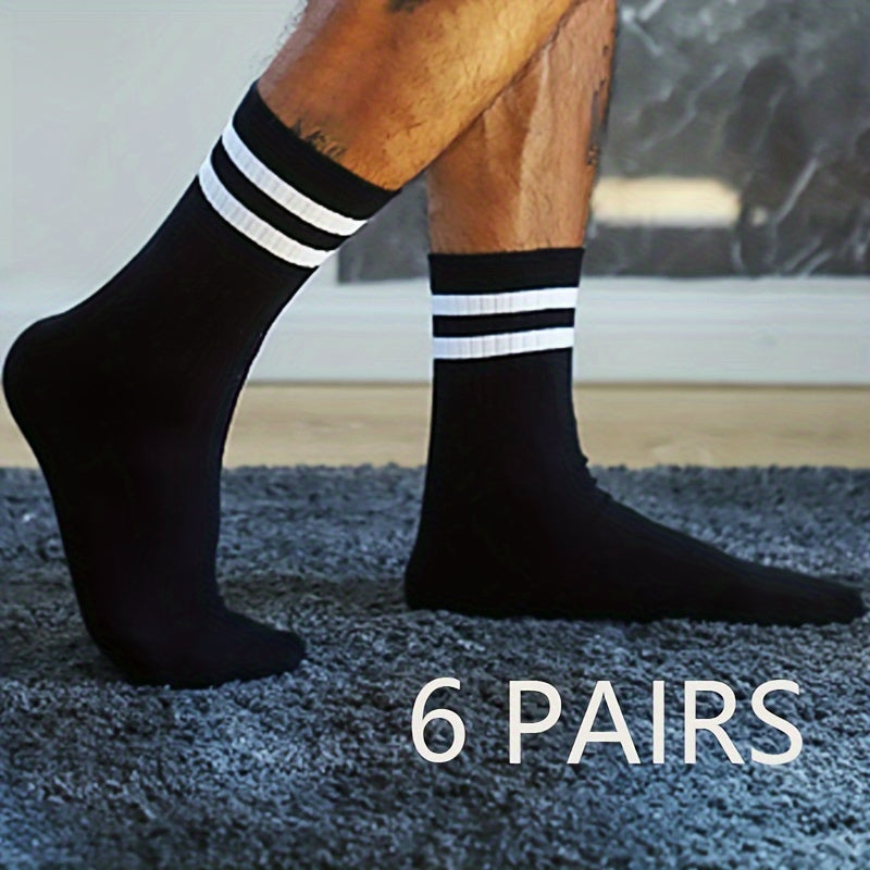 Men's Striped Crew Socks 6 Pairs Breathable Polyester Spandex All-Season