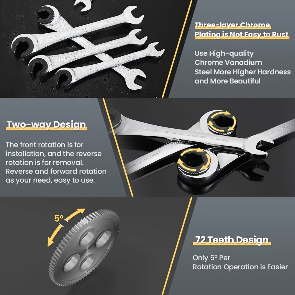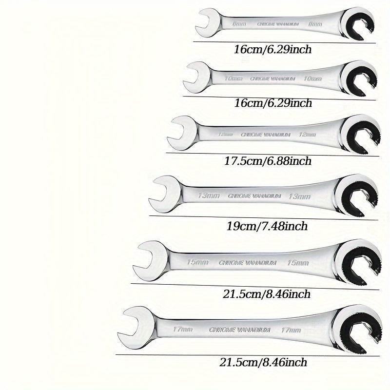 6-Piece Fixed Head Tubing Ratchet Wrench Set Open End Automotive Hand Tools