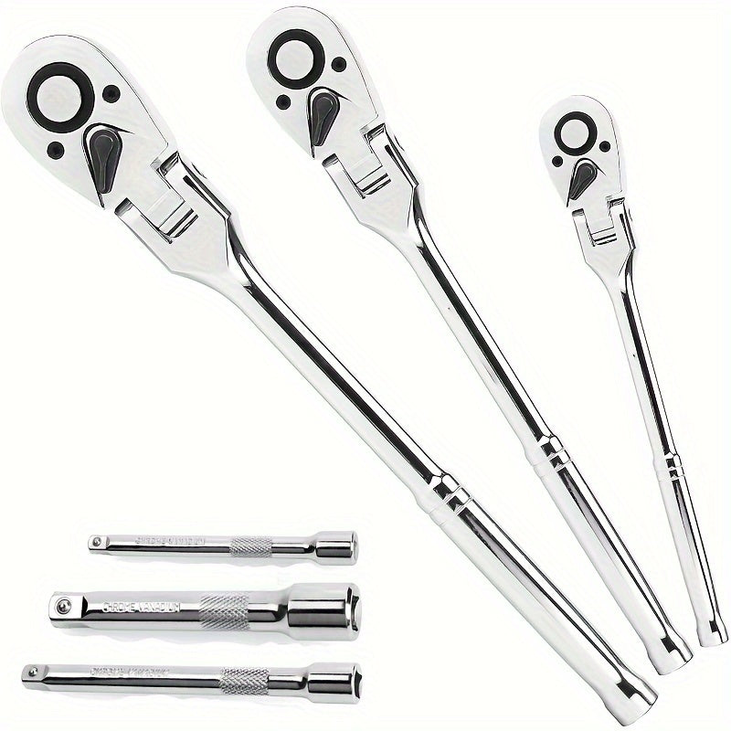 6-Piece Flex Head Ratchet Set Chrome Vanadium Steel 1/4 3/8 1/2 Inch
