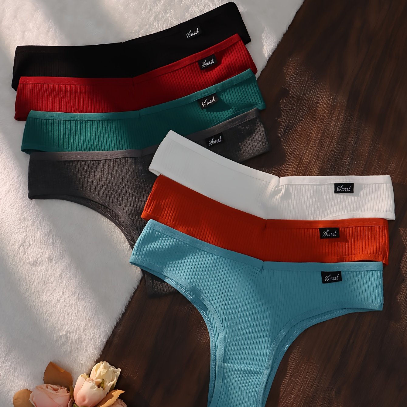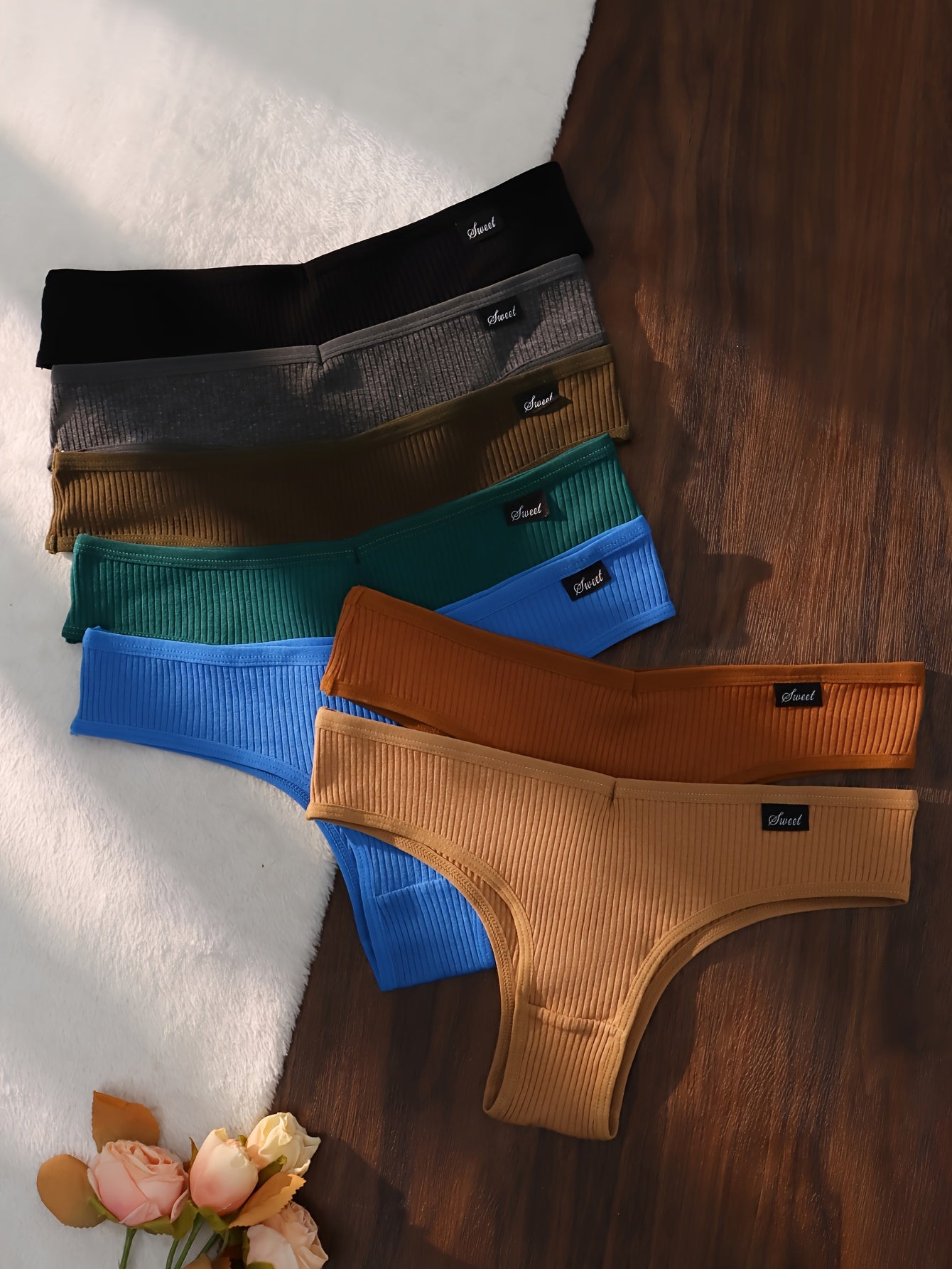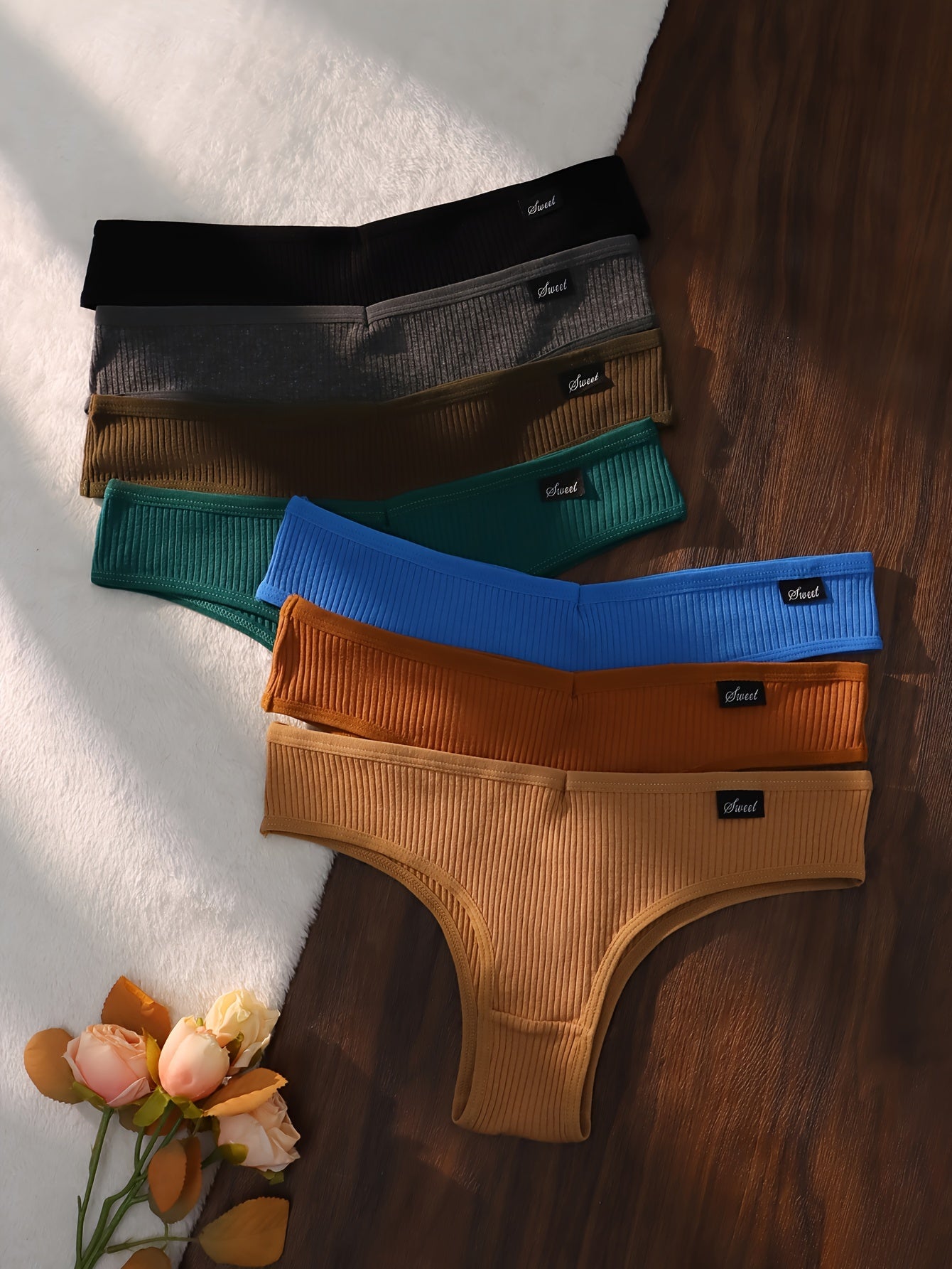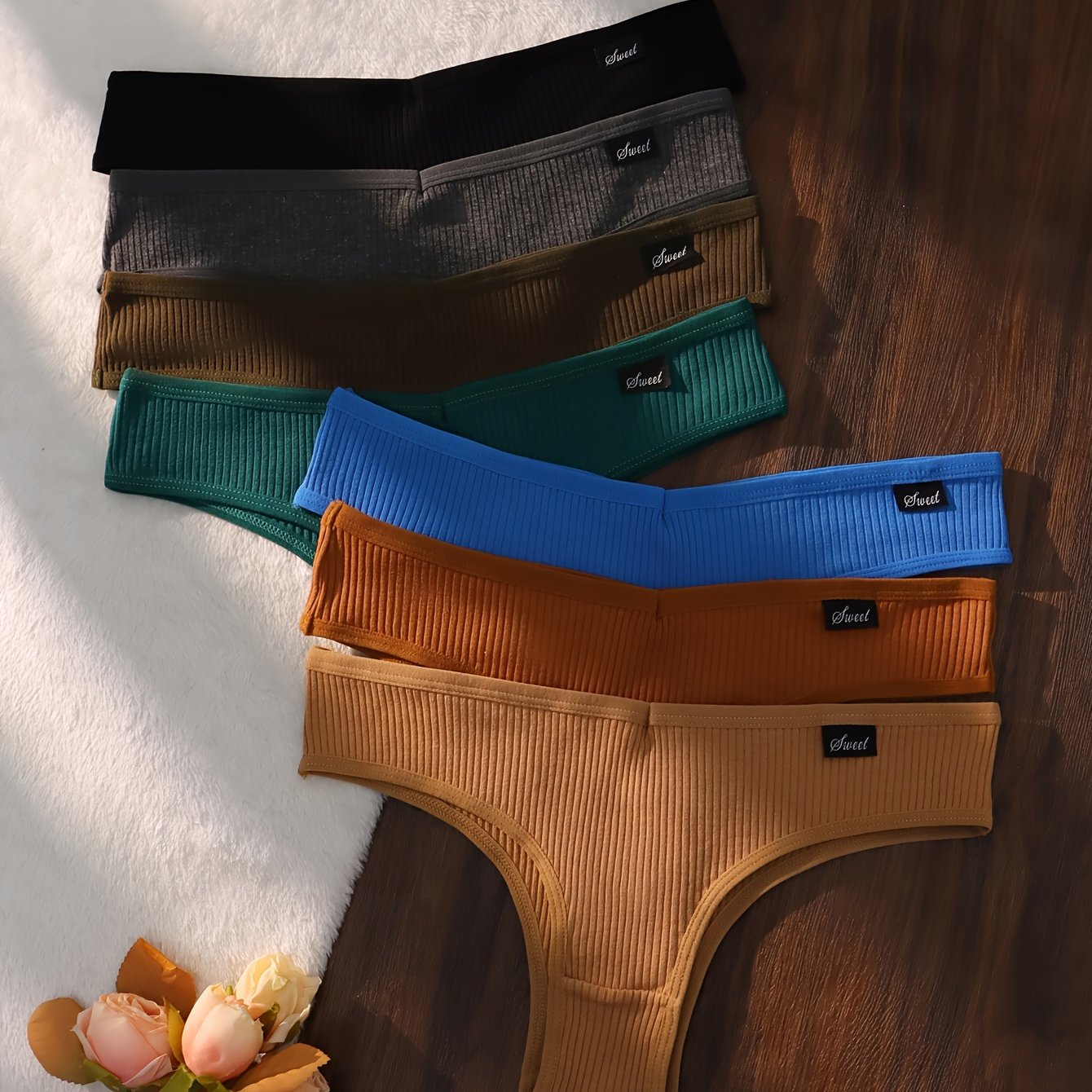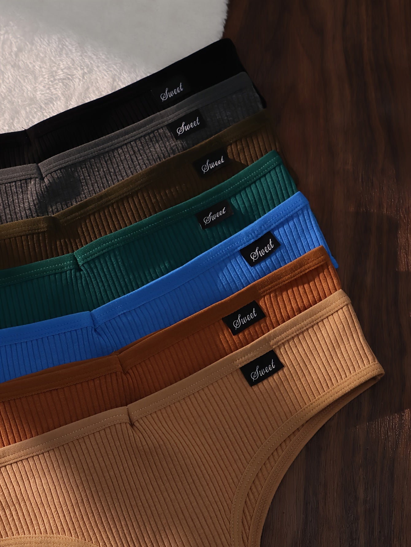 Women's Seamless Ribbed Solid Briefs Set of 7 Breathable Comfortable Panties