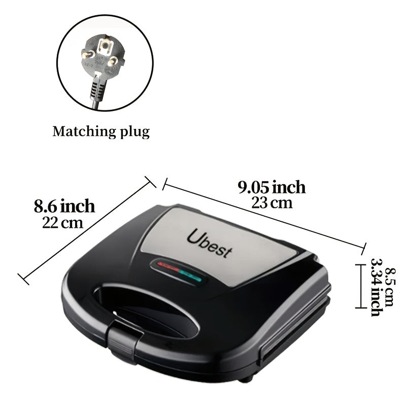 750W stainless steel multi-function maker with pilot light cold touch handle non-stick plate for toast waffles