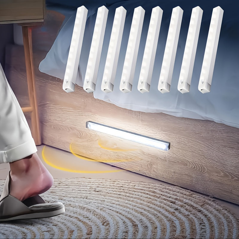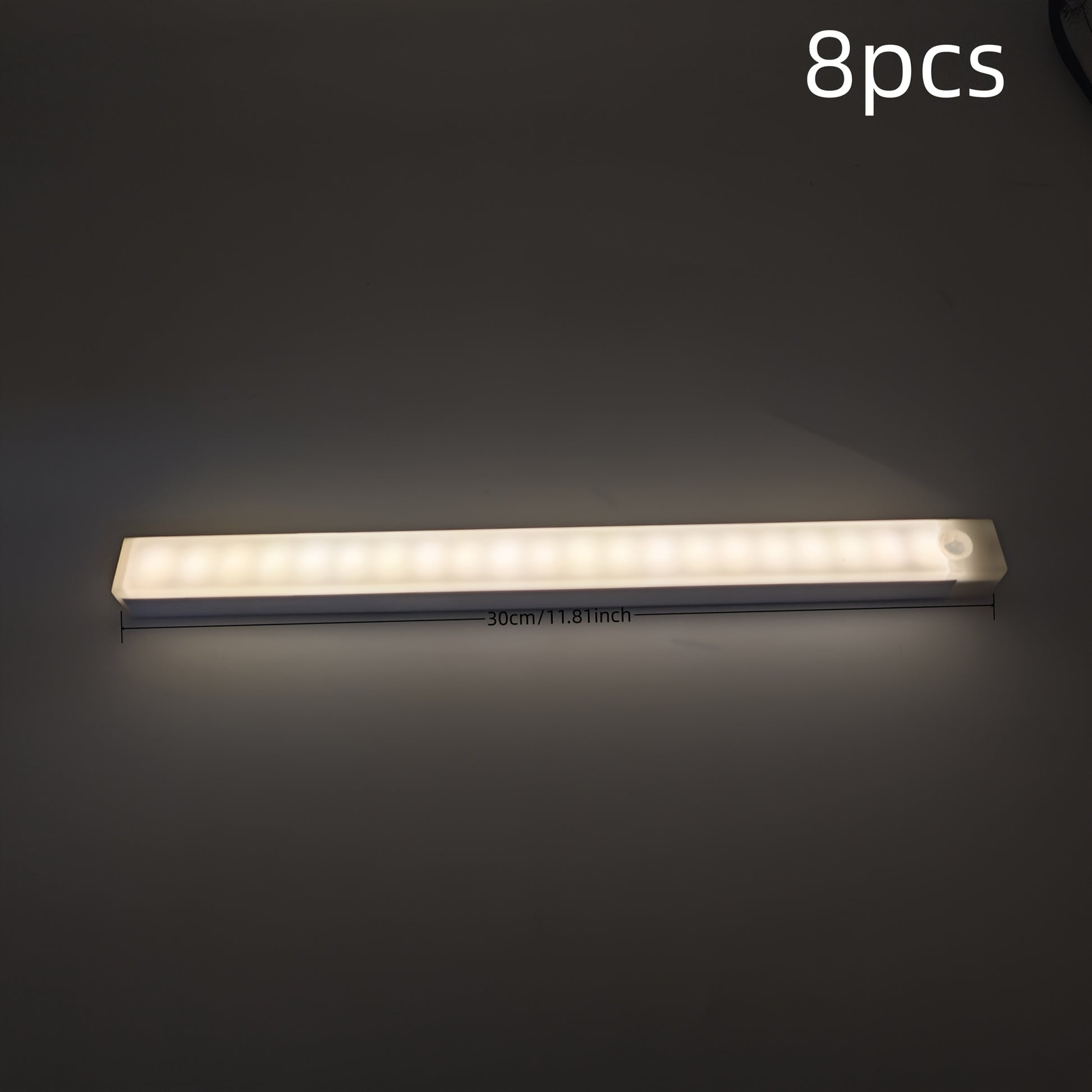 8pcs LED Motion Sensor Cabinet Lights USB Rechargeable Lithium Polymer Battery Indoor Wardrobe Kitchen Shelf Staircase Corridor