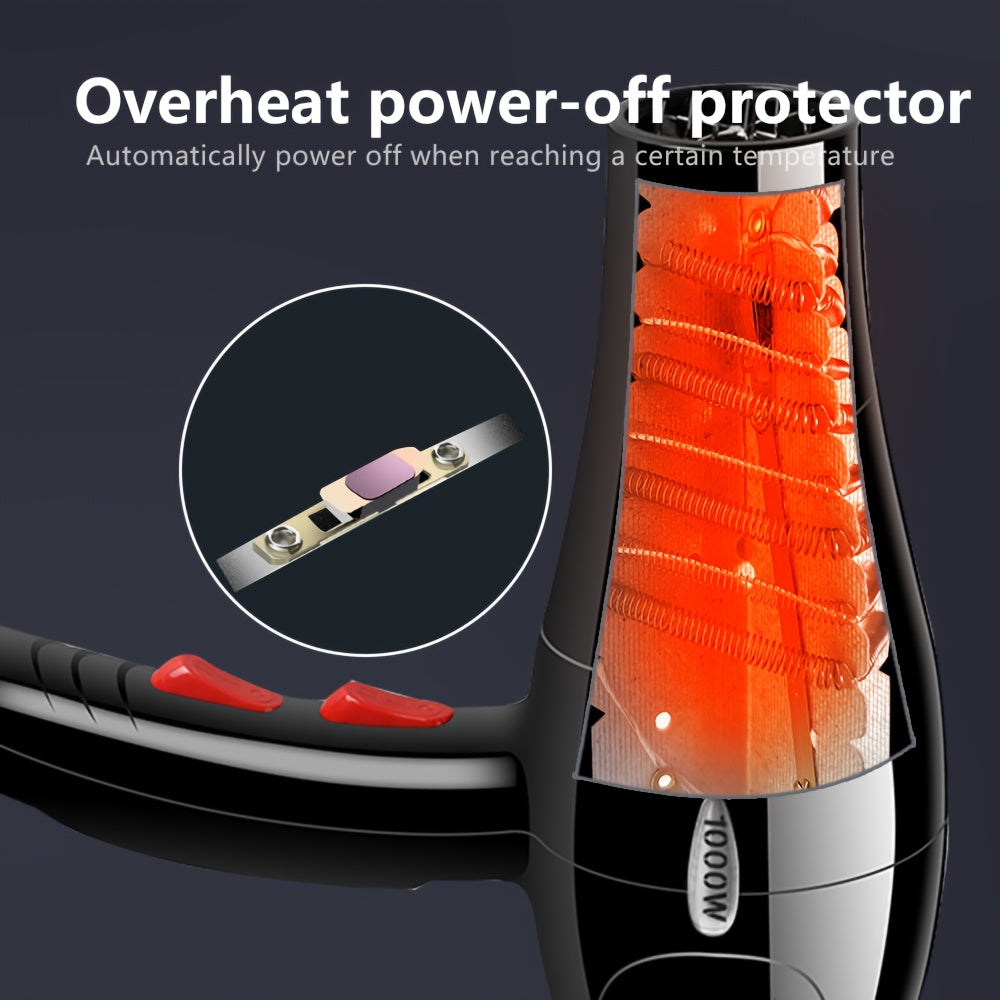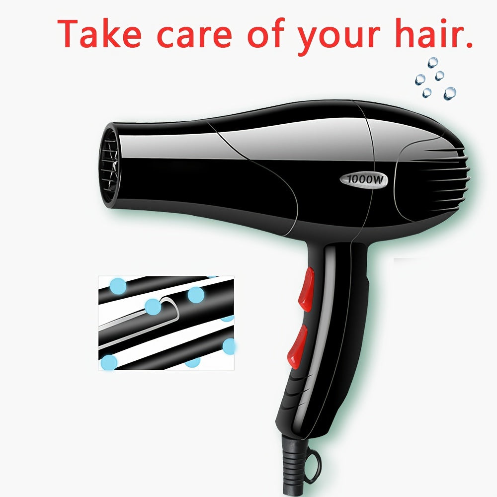 1000W Hair Dryer with No-Fold Handle, European Plug, 1.5-3m Cord, Plastic