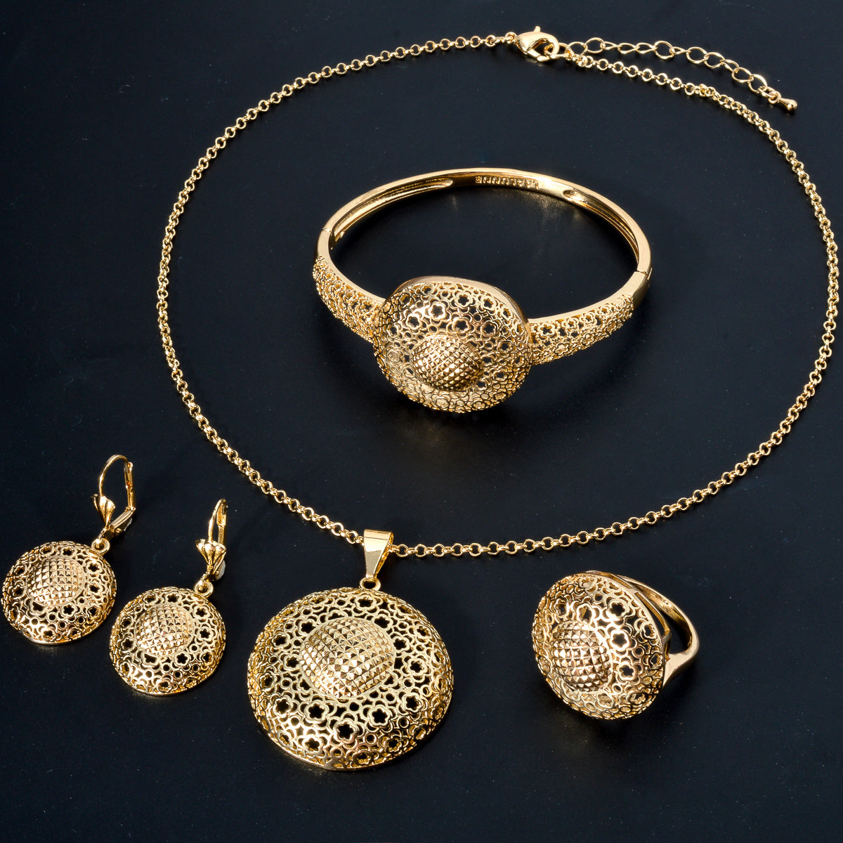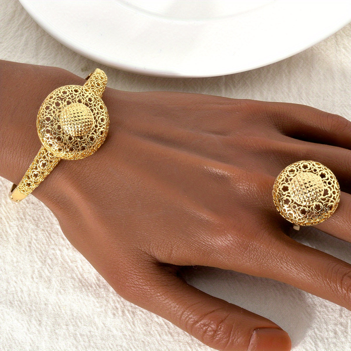 Women's Copper Jewelry Sets with Hollow Carved Floral Patterns and 3D Pendant Necklace Bracelet Ring Earrings