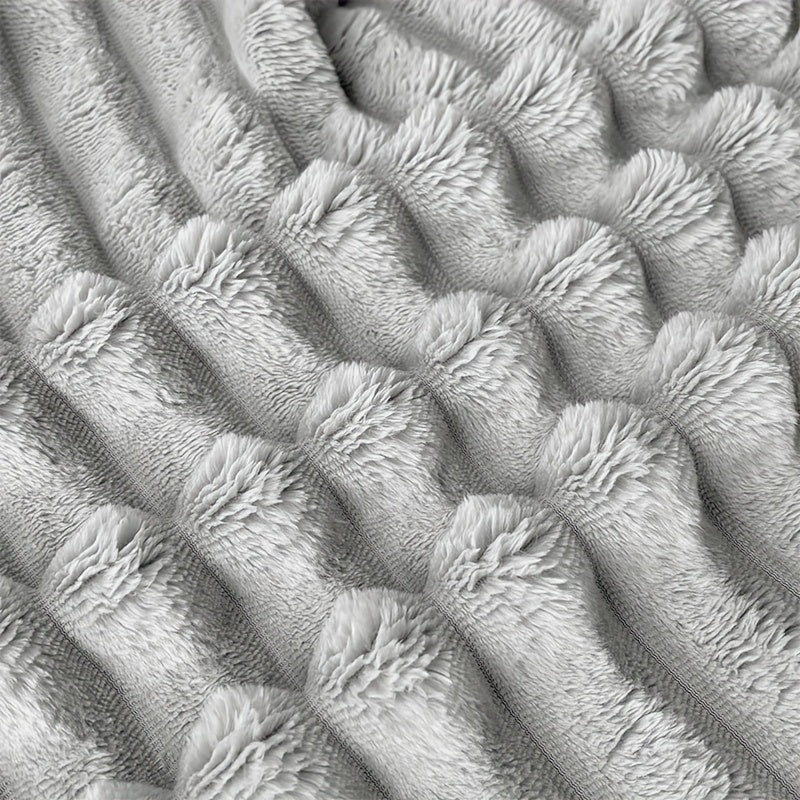 Cozy Ribbed Knit Throw Blanket and Pillowcase Set Grey Stripe Soft Warm Thick