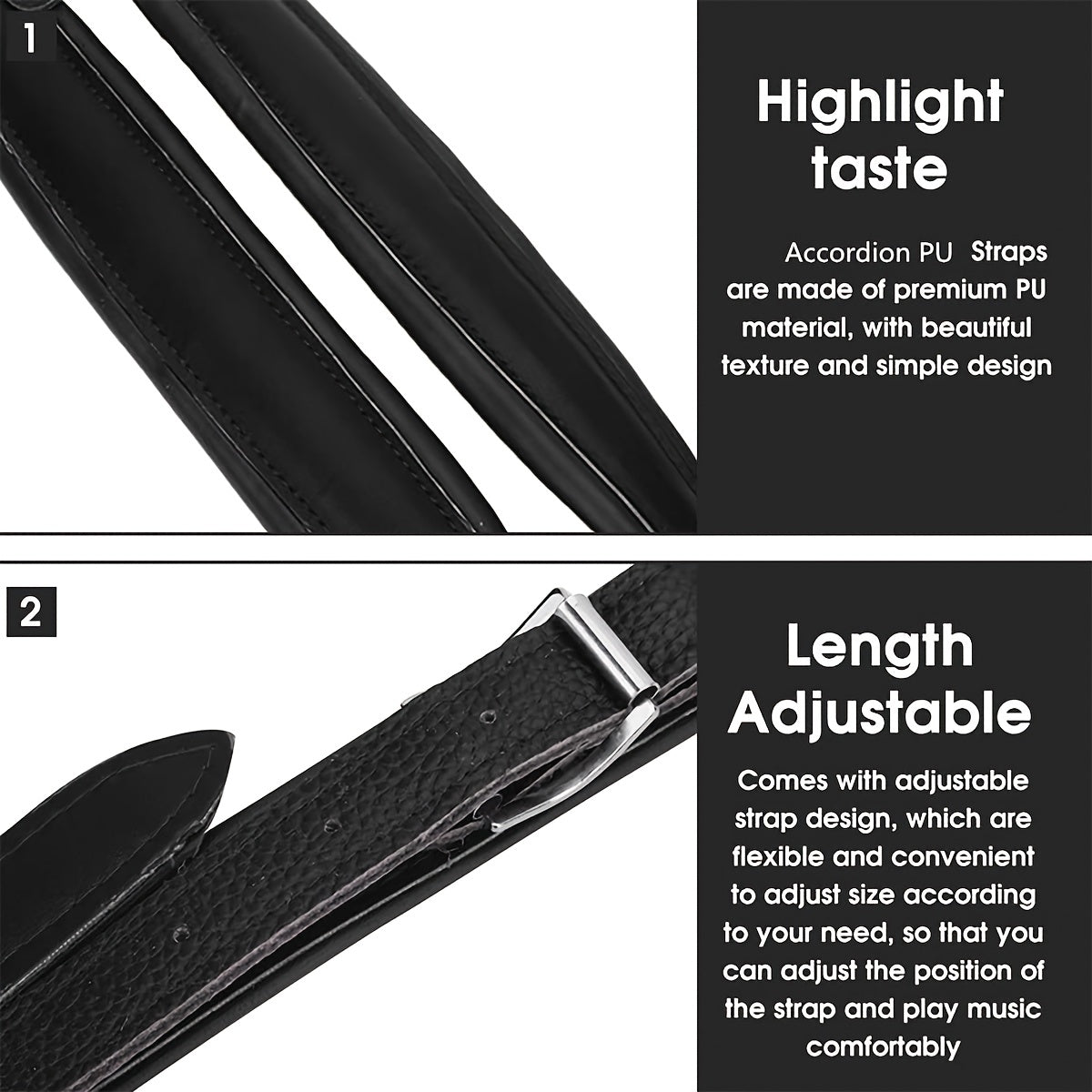 Adjustable Faux Leather Accordion Strap for 16-120 Bass Instruments Black