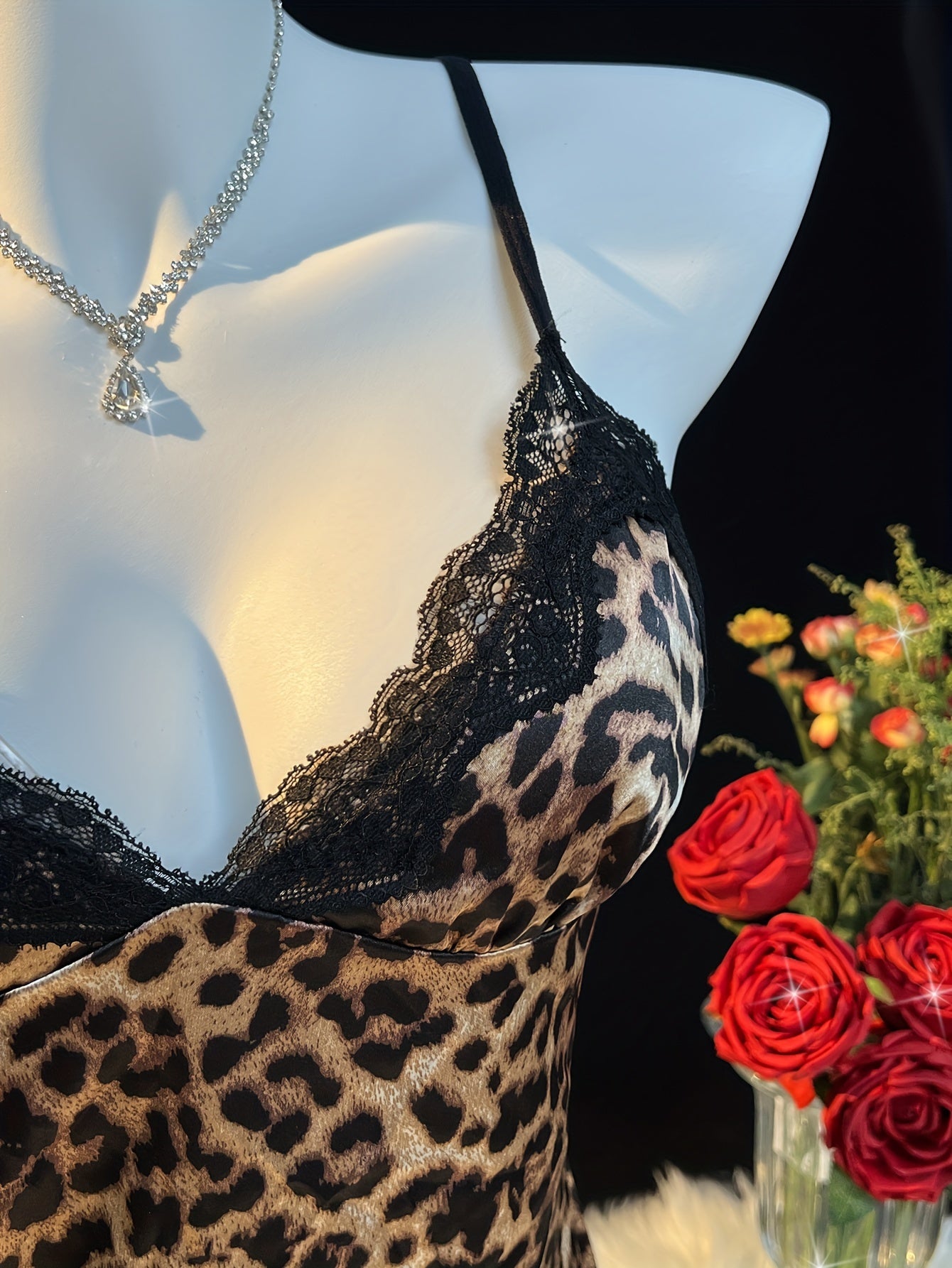 Women's Woven Leopard Print Slip Dress with Cross Strap Lace-Up Detail