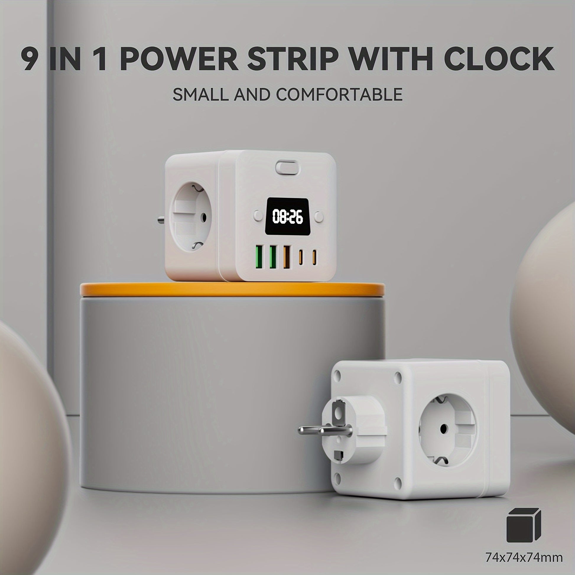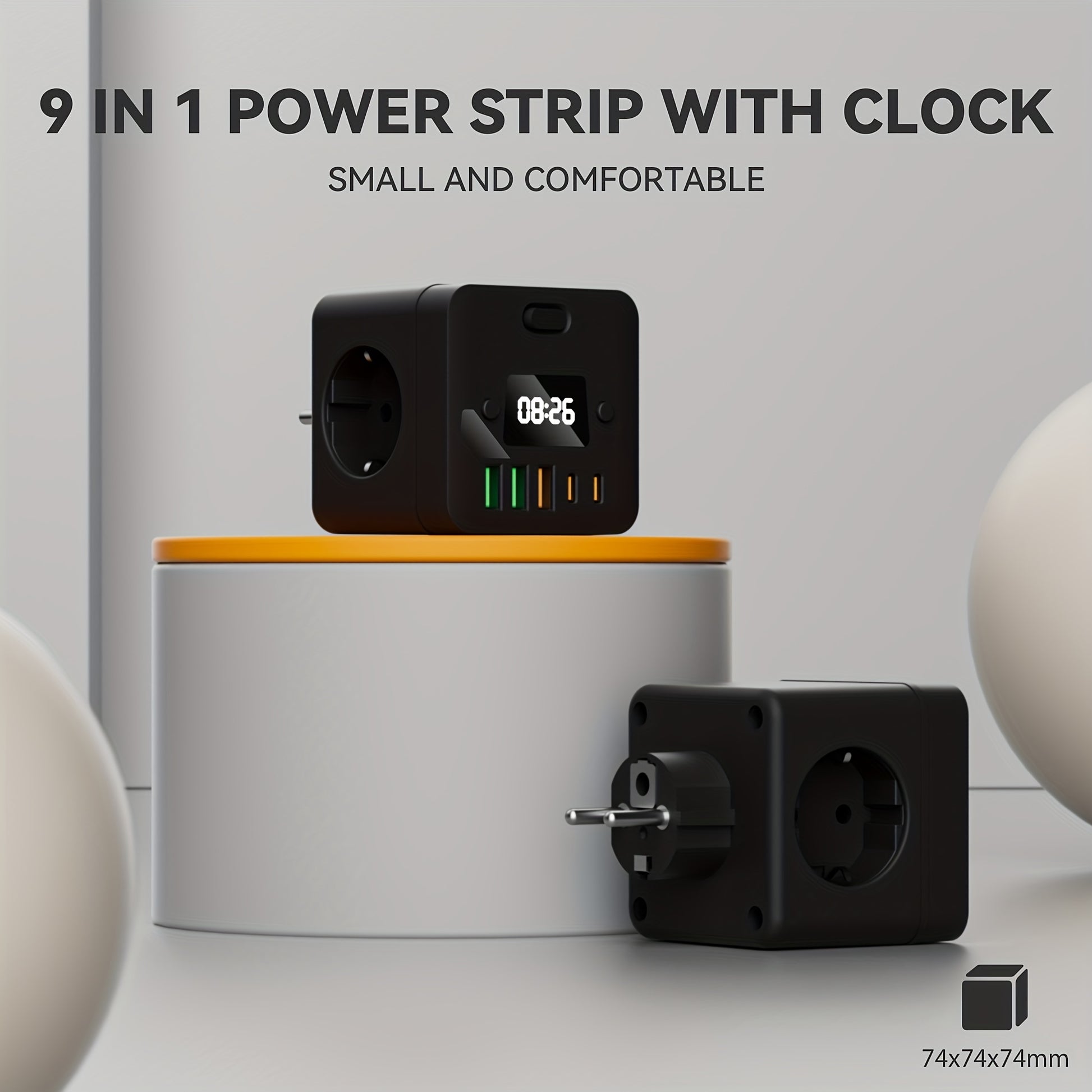 Advanced 9-in-1 Power Strip Surge Protector with USB-C and Clock for Home Office Travel