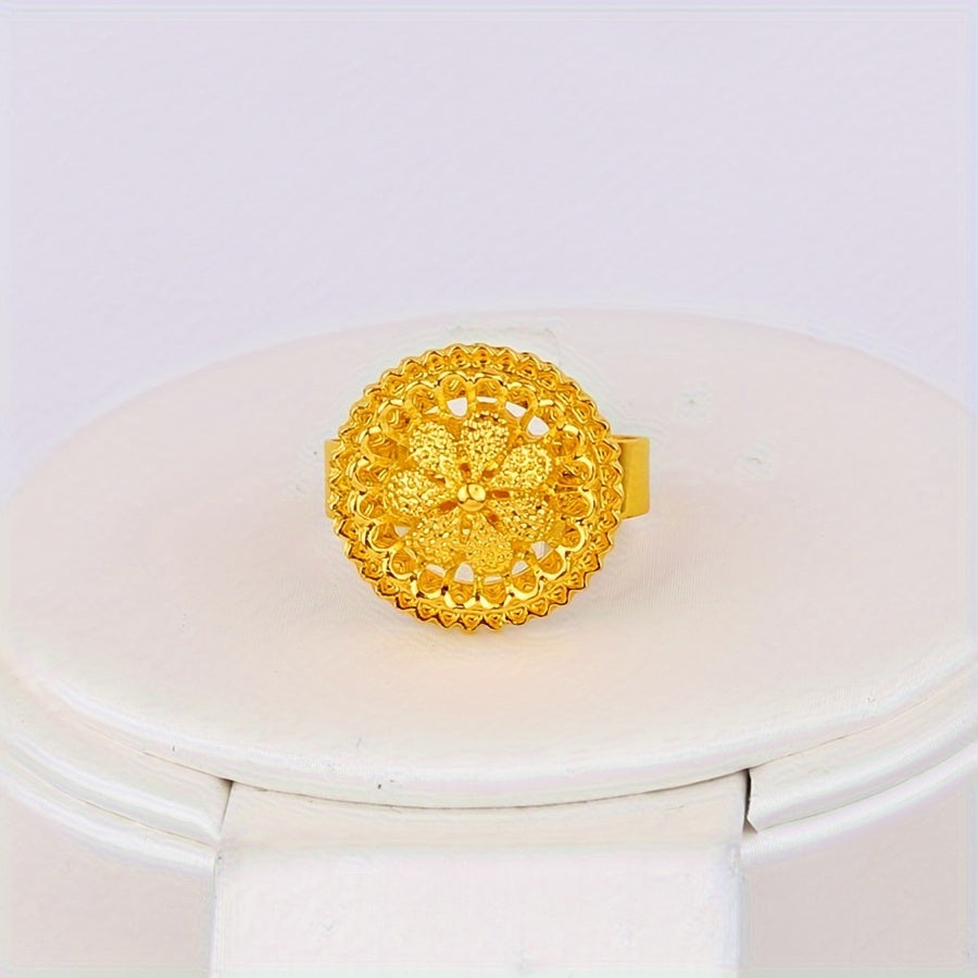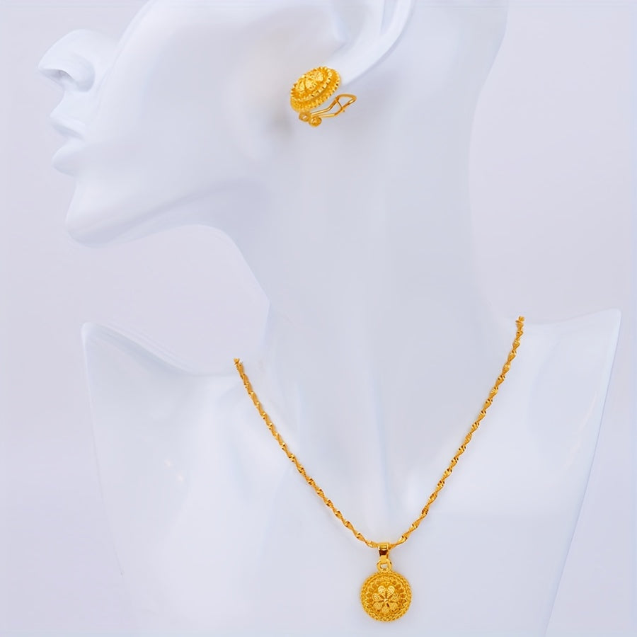 4-Piece Middle Eastern Style Jewelry Set Gold-Tone Alloy Earrings Ring Necklace Pendant Bridal Wedding Daily Wear