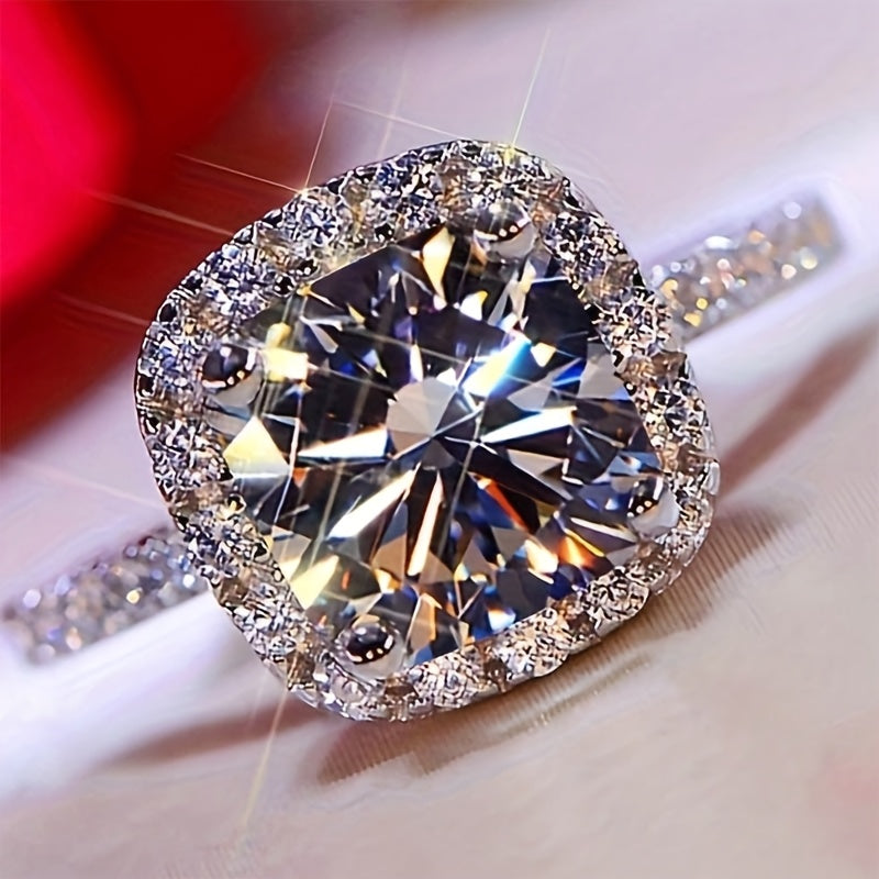 Sterling Silver Square Ring with Cubic Zirconia December Birthstone Celestial Design