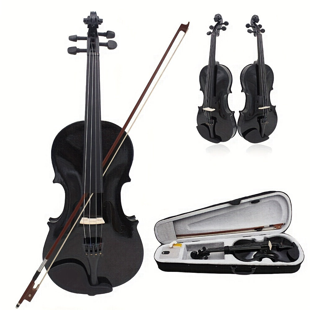4/4 Solid Wood Violin Black for Beginners with Chin Rest and Case