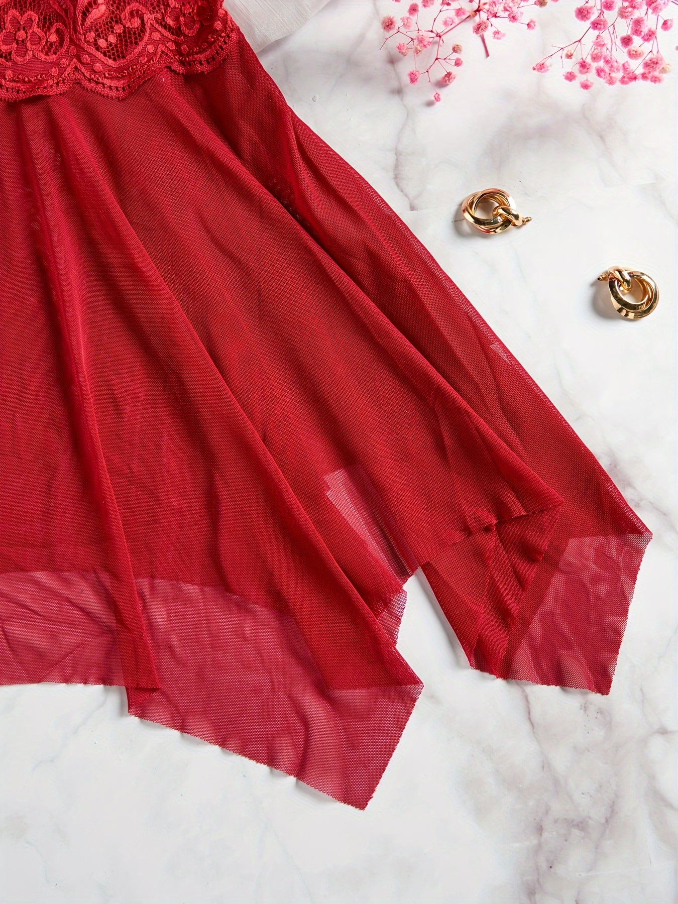 Women’s Asymmetrical Mesh Lace Cami Dress and Thong Lingerie Set