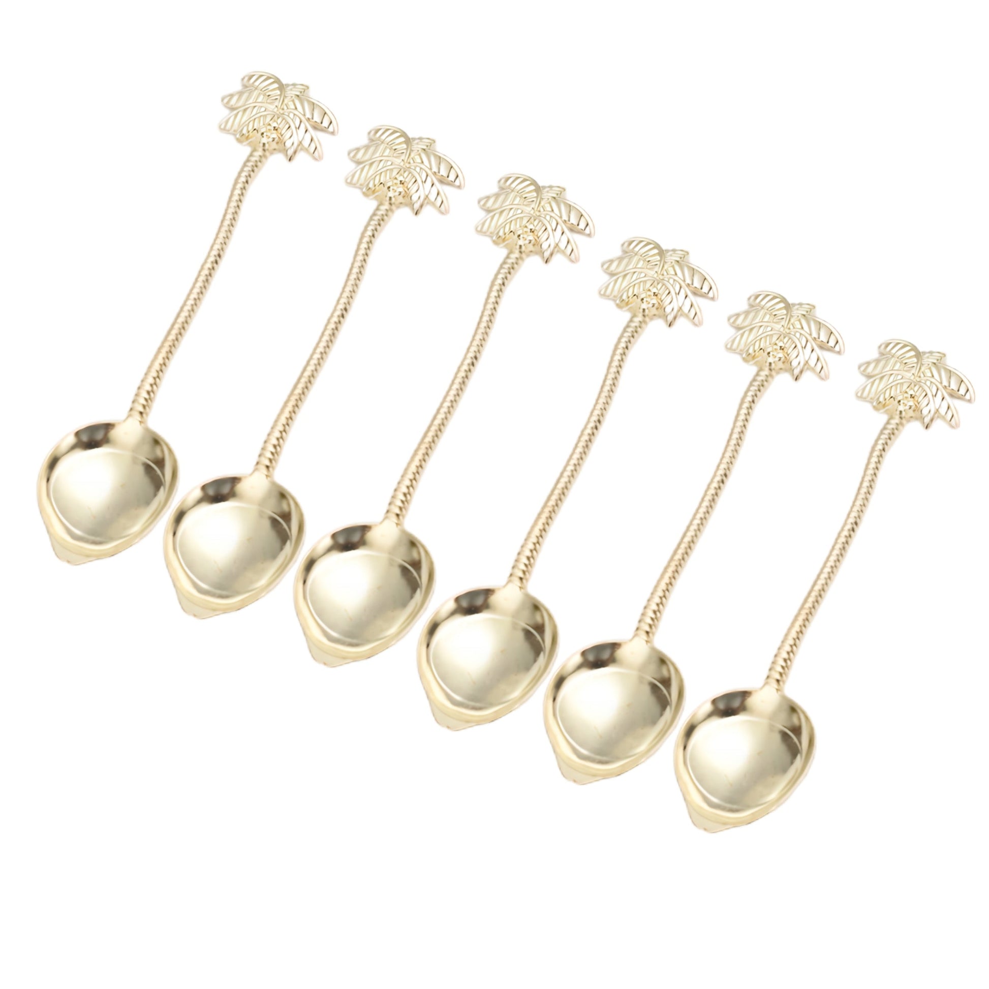 Set of 6 Tropical Coconut Palm Metal Coffee Stirring Spoons for Dining Bar Gift