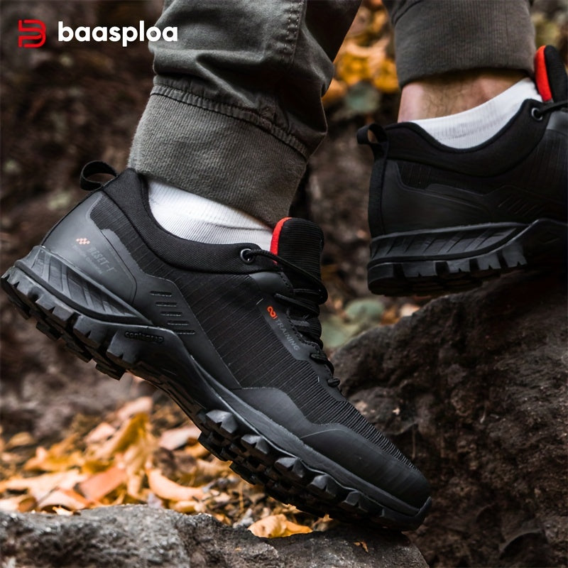 Men's Low-Top Waterproof Hiking Shoes in Black and Red with Anti-Slip Sole
