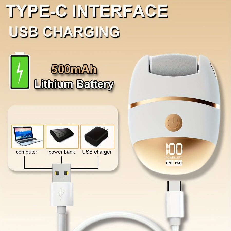 Electric Foot Grinder with LED Display and Spare Heads for Calloused Skin Removal Portable Cordless Pedicure Tool
