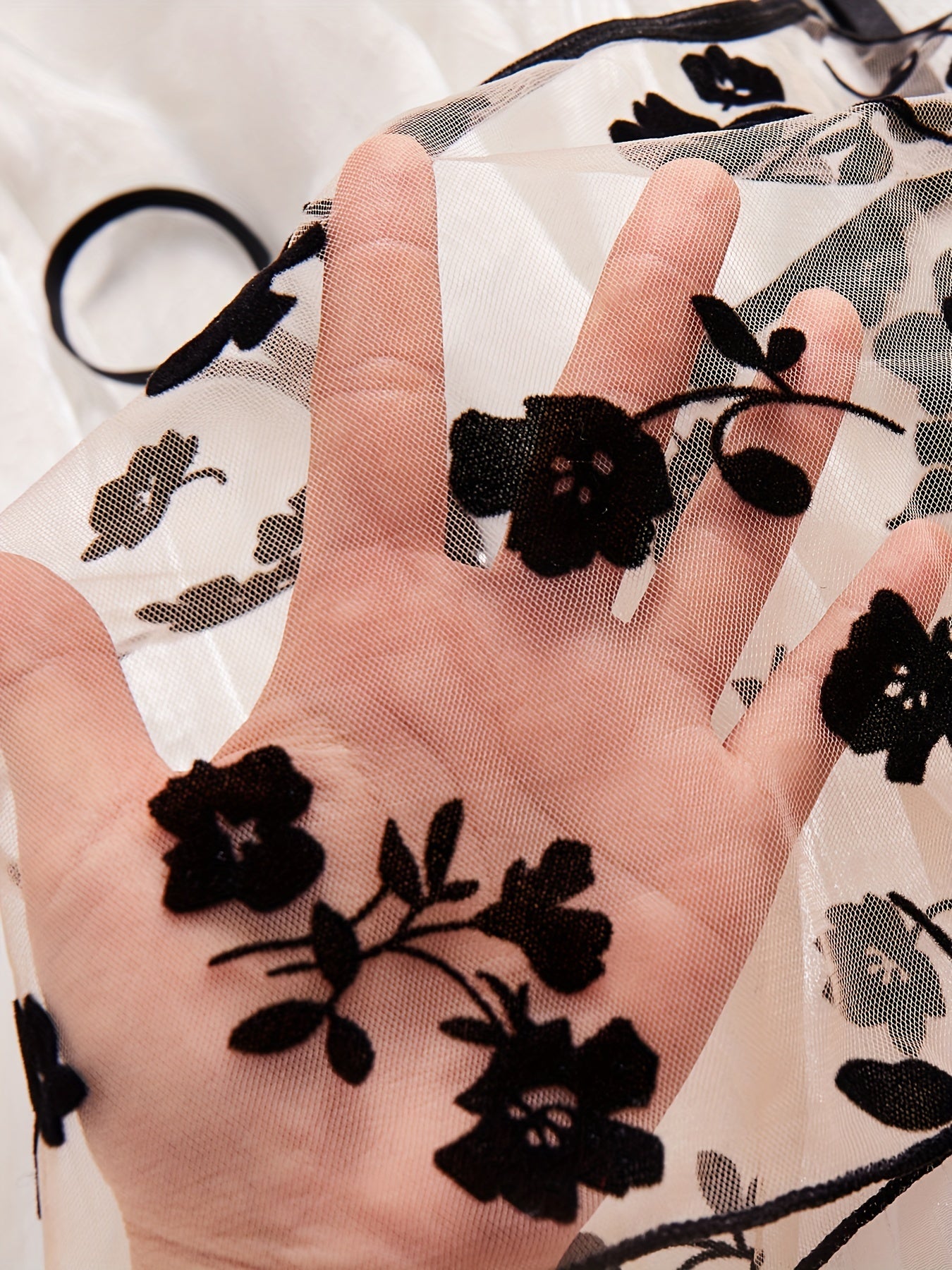 Women's Black Mesh Garter Bra Set with Pure Desire Print