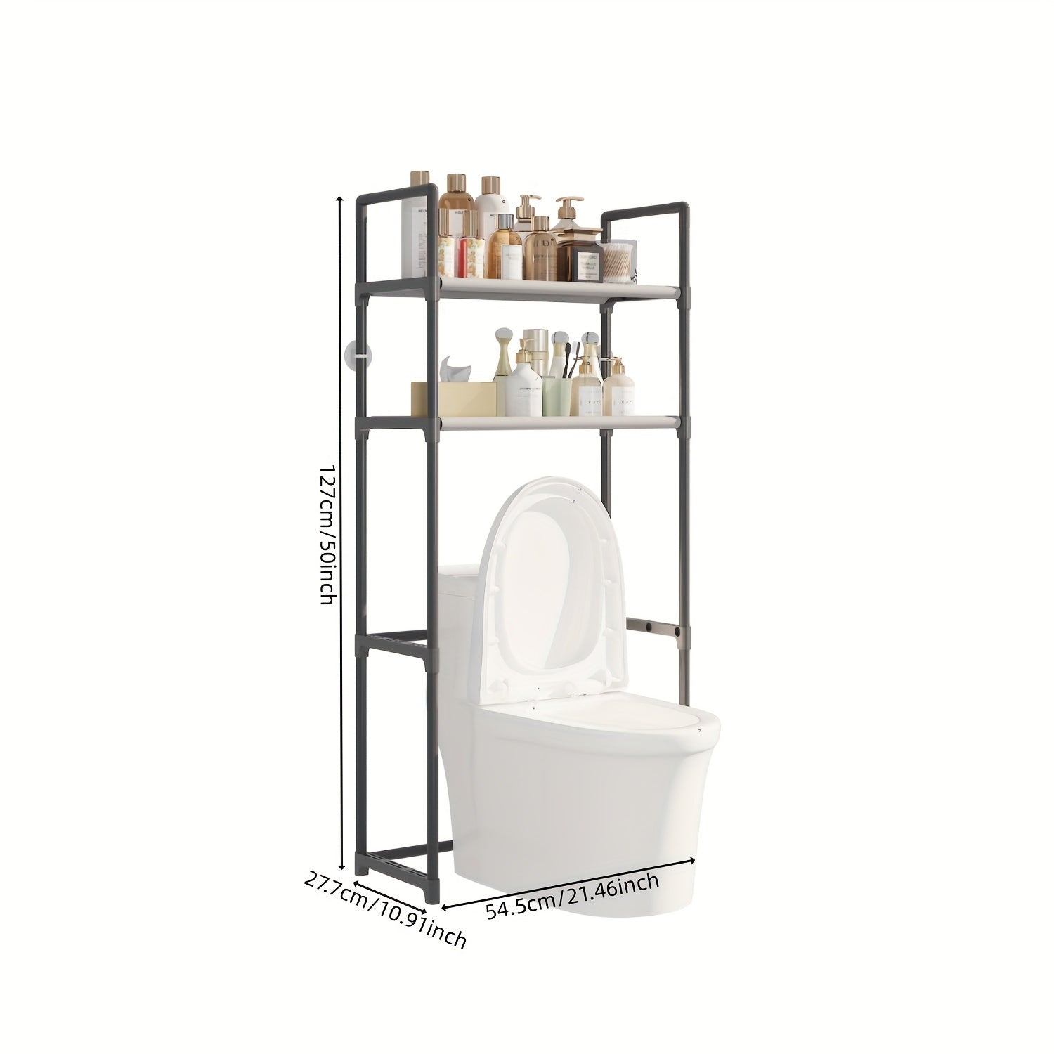 Black Metal Plastic Over-the-Toilet Bathroom Storage Organizer with Adjustable Shelves