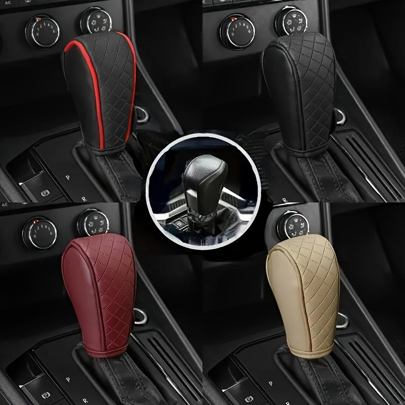 Black PU Leather Gear Shift Knob Cover Non-Slip Diamond Stitch