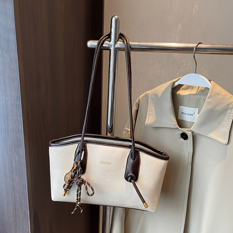 Black Vintage Tote Bag with Removable Strap Zipper Closure Edge Painted