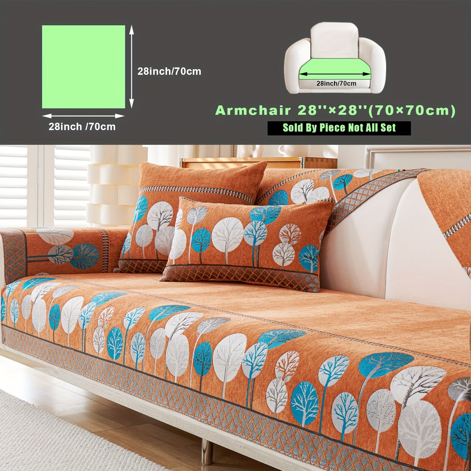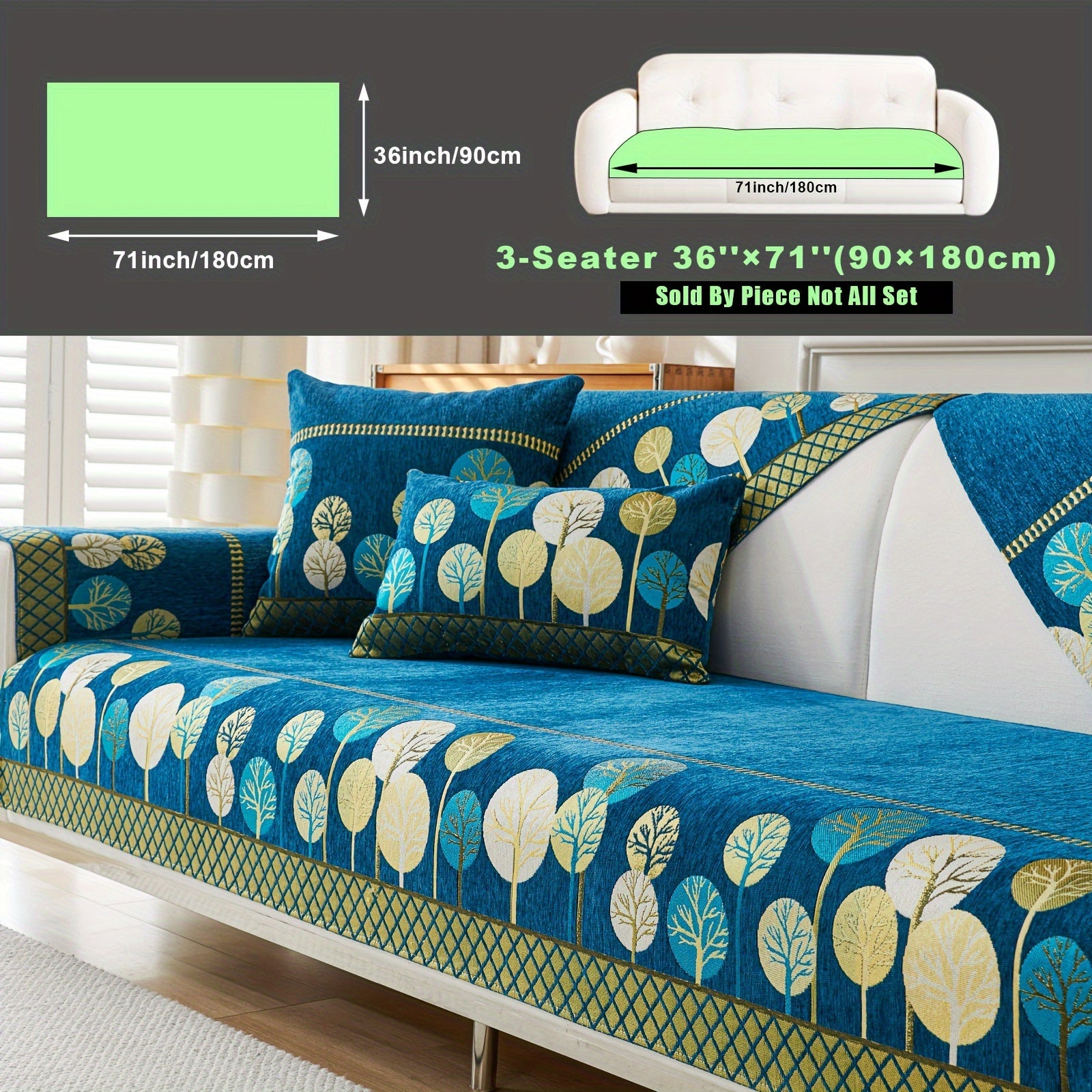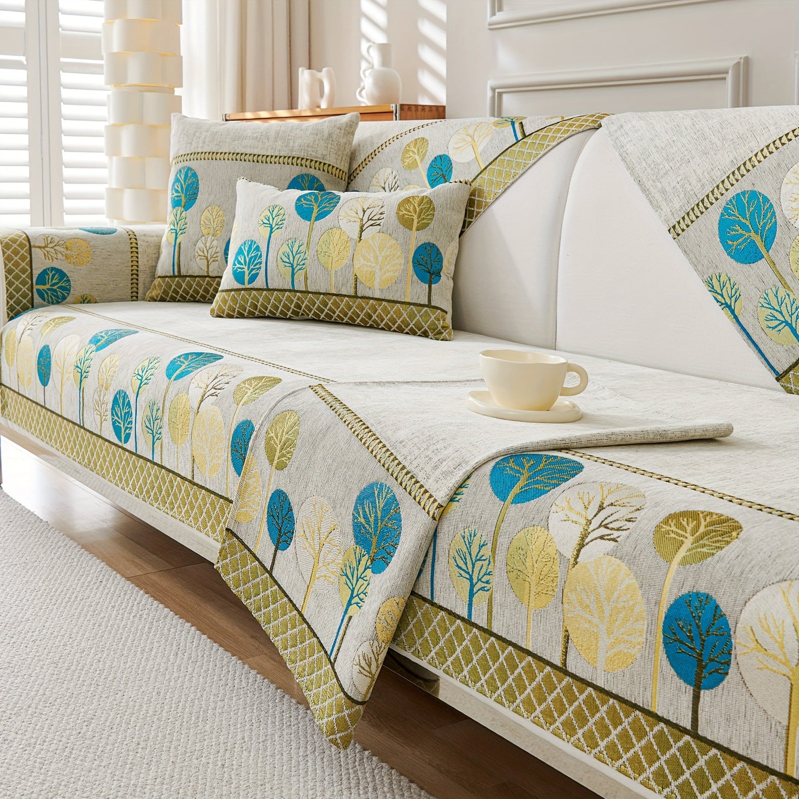 Bohemian Style Sofa Cover with Moonlight Forest Tree Pattern Non-Slip Machine Washable for Single to Quadruple Seat Sofas