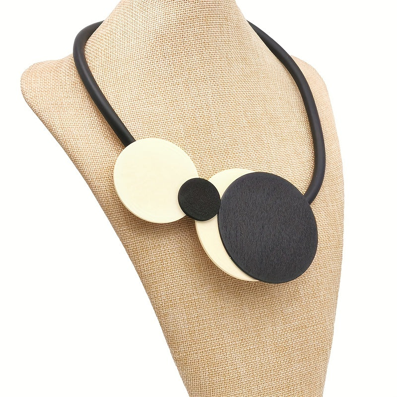 Wooden Pendant Necklace with Vintage Rubber Chain for Casual, Gothic, Bohemian Styles