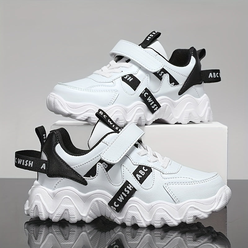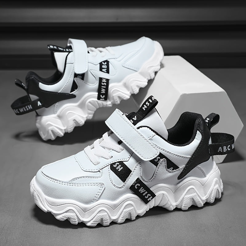 Boys' Letters Print Thick-Soled Sneakers with Hook Loop for Casual Sports Outdoor