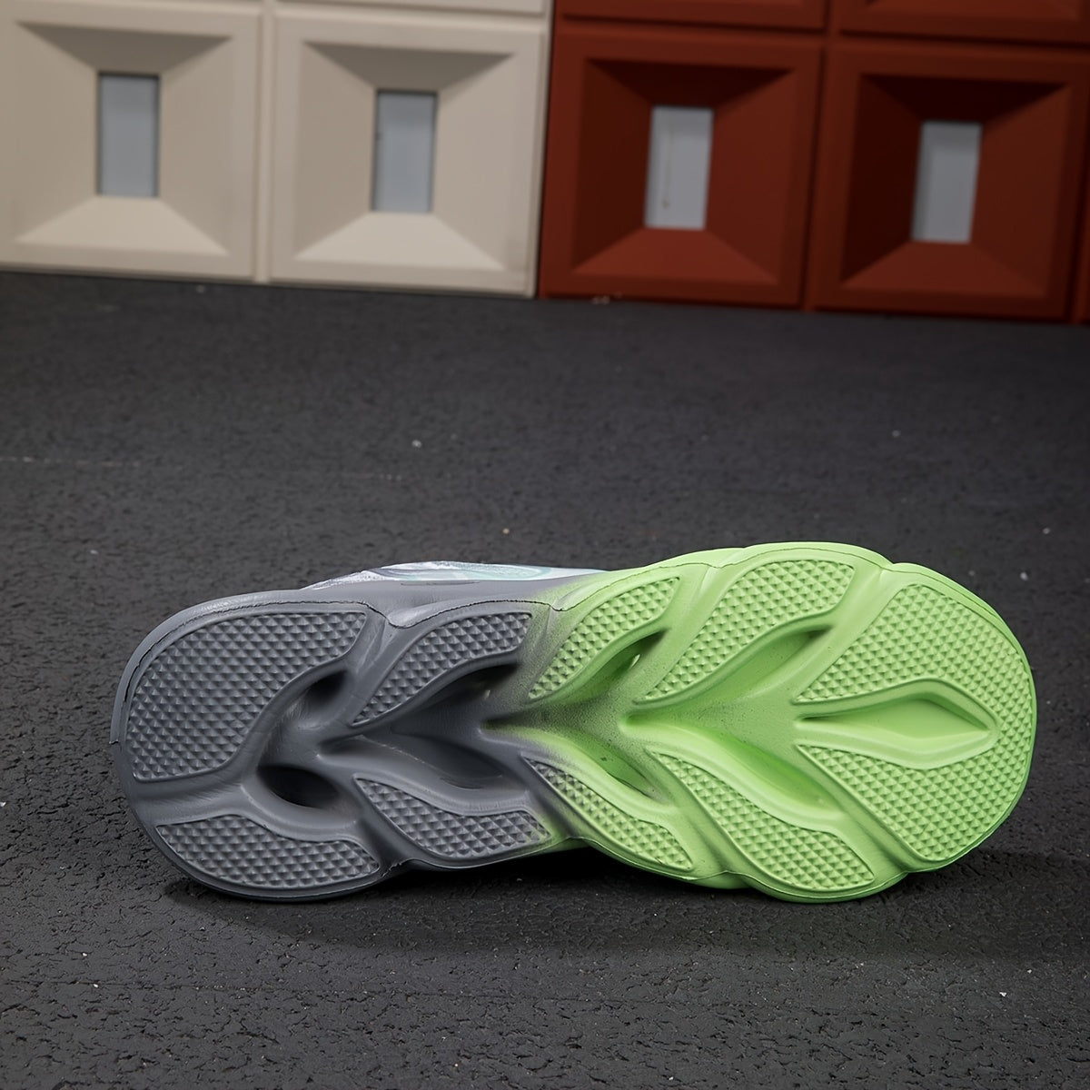 Men's Black and White Breathable Mesh Sneakers with Thick Sole and Geometric Pattern