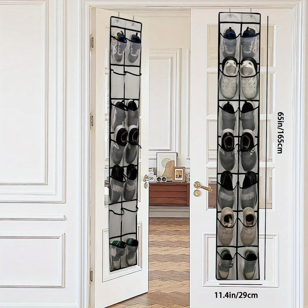 Over-Door Shoe Organizer with 14 Mesh Pockets for Closet Storage