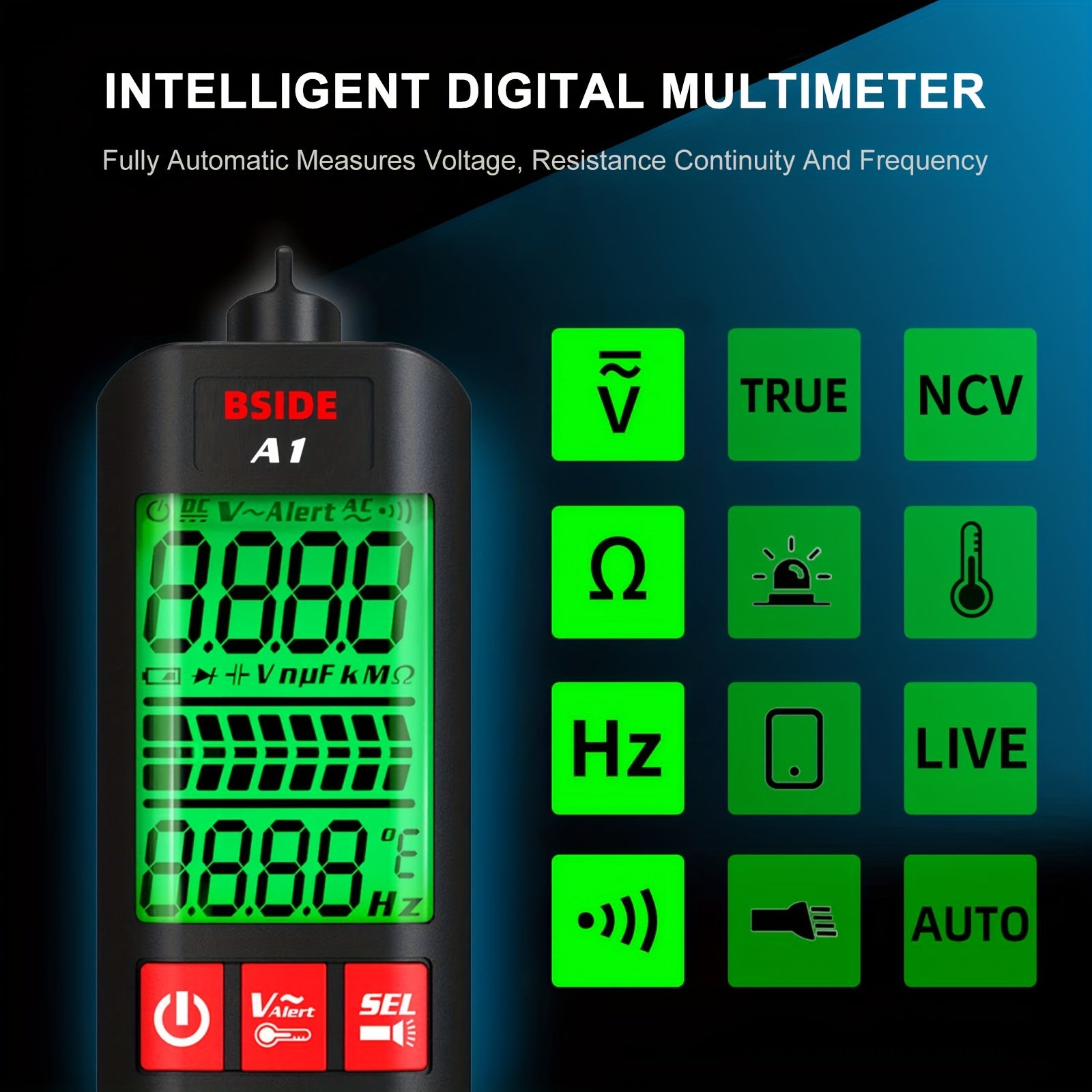 Digital Multimeter with Non-Contact Voltage Tester and Flashlight for Voltage, Current, Resistance, Temperature