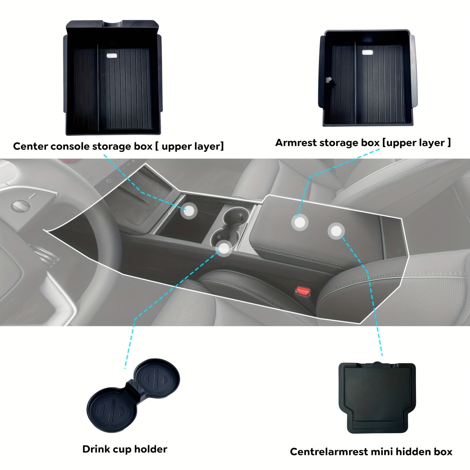 Car Interior Center Console Armrest Storage Box Set for Tesla Model 3 and Y