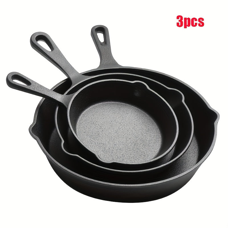 Cast Iron Skillet Set 3 Pieces Non-Stick Frying Baking with Lid and Scraper