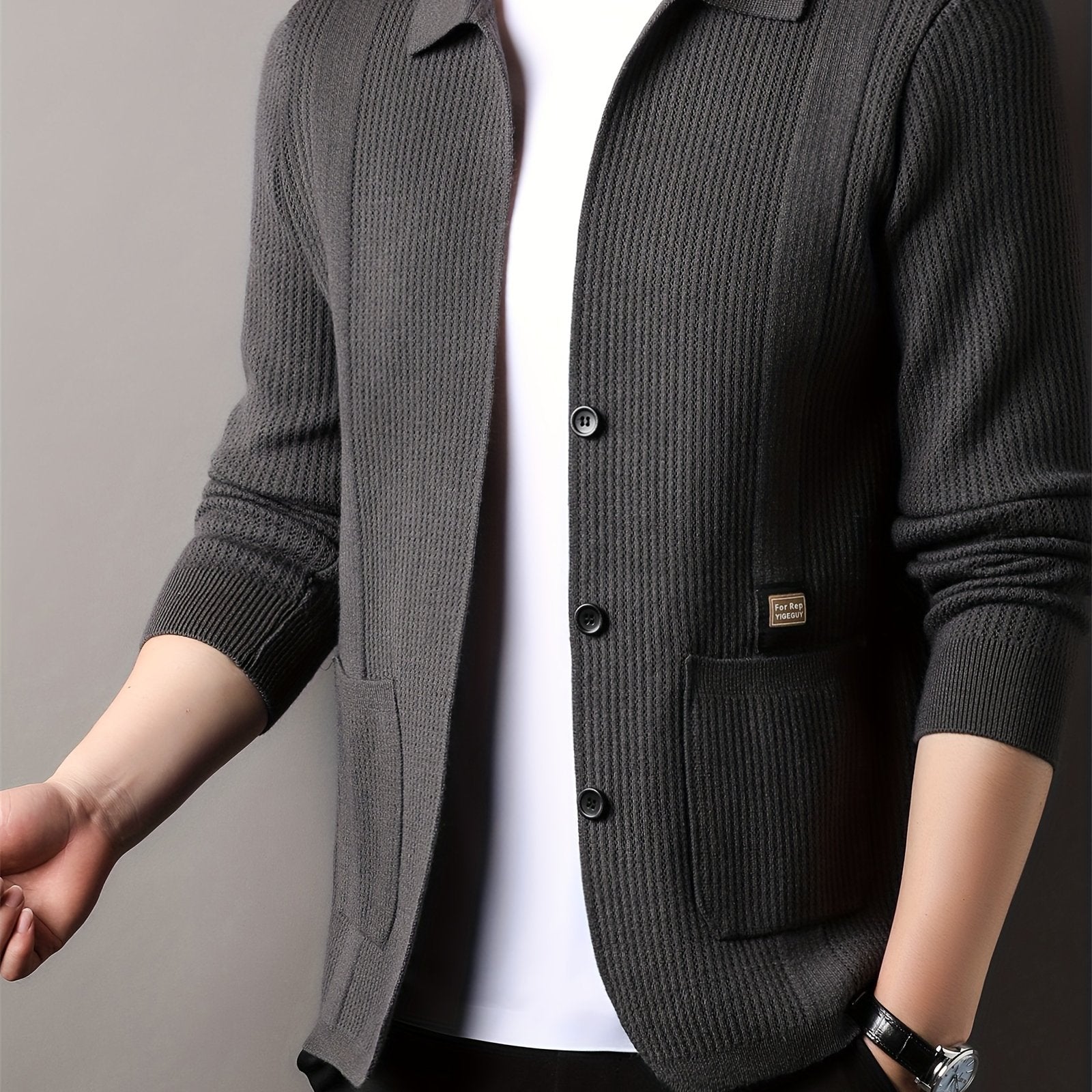 Men's V-Neck Cardigan Fall Winter Solid Color Knit with Pockets