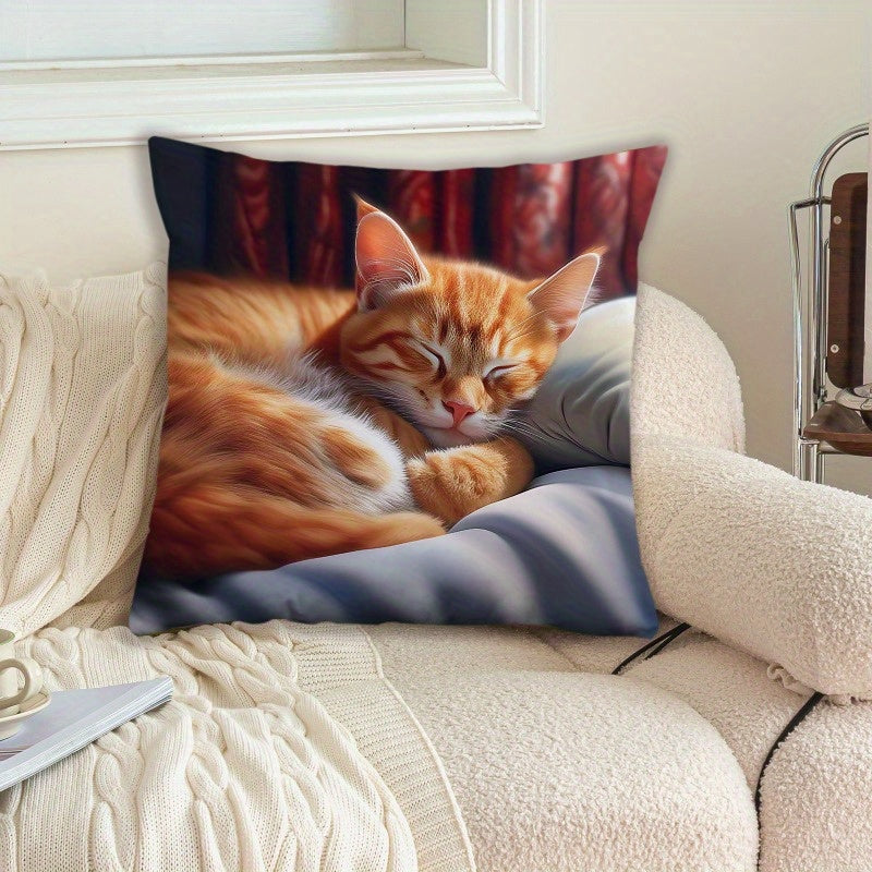 Cat Print Polyester Throw Pillow Cover 44.96x44.96 cm for Home Decor