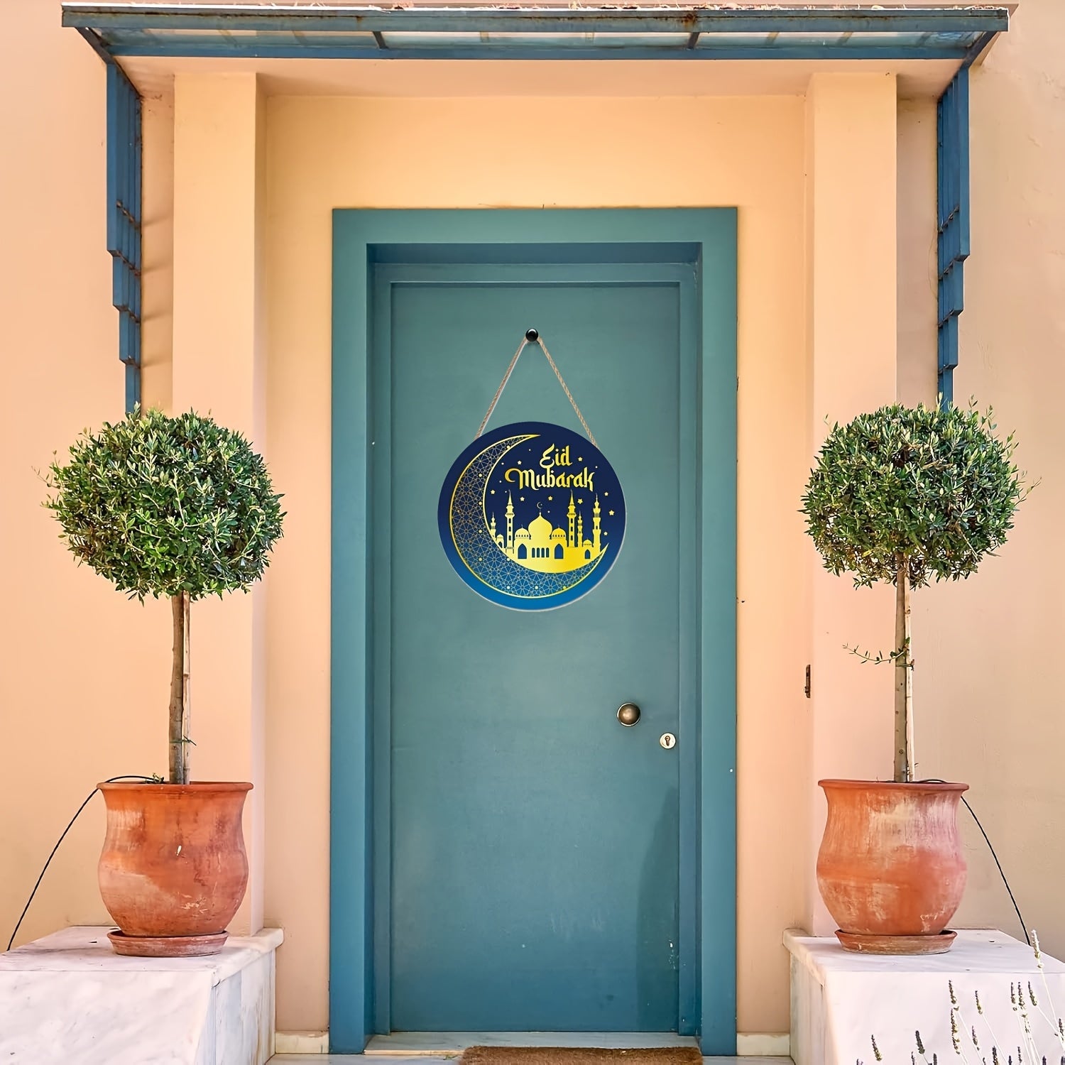 Wooden Wall Decor for Ramadan Eid Celebration Blue and Gold Door Sign