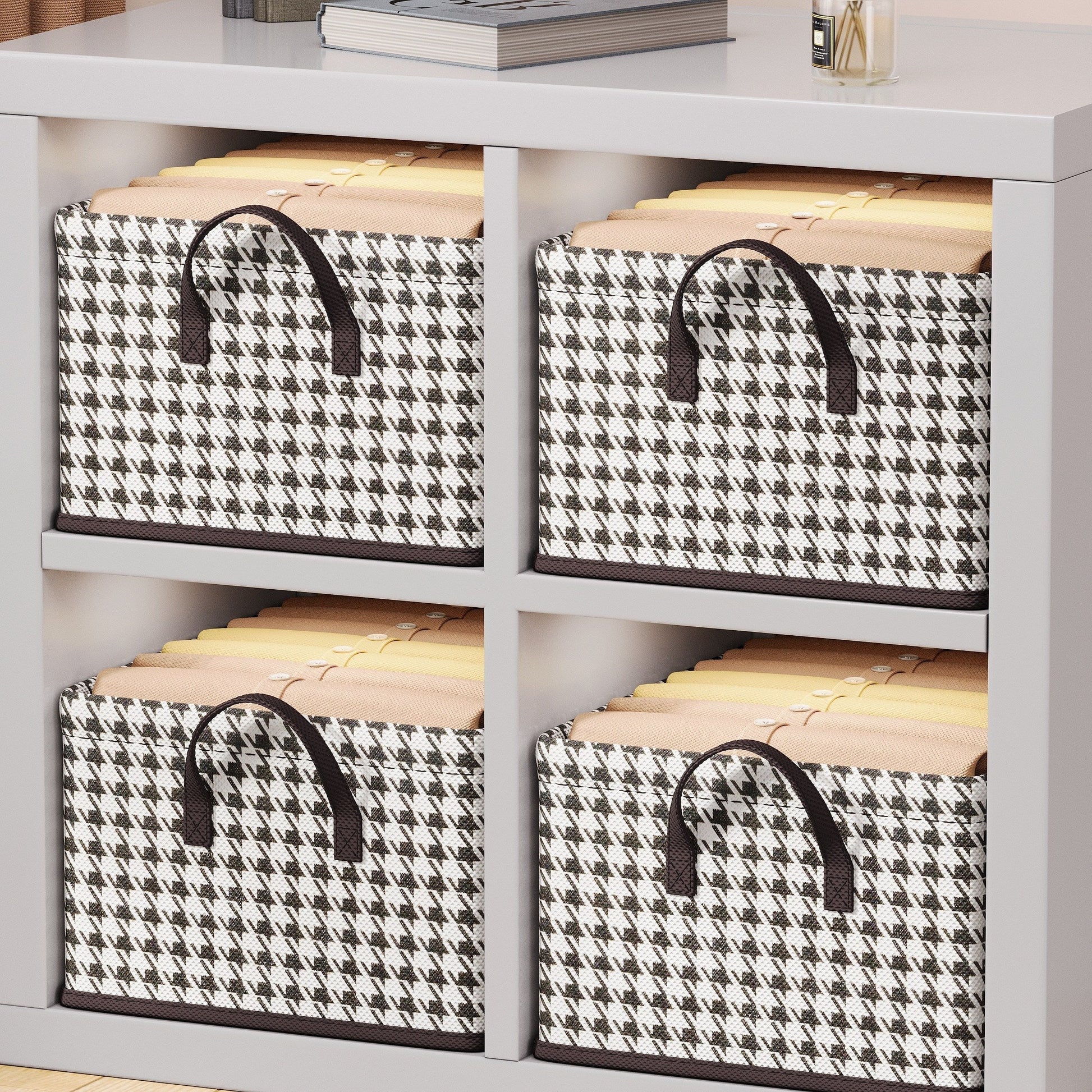 Foldable Storage Basket with Handles Geometric Non-Woven Fabric for Bedroom Living Room Laundry