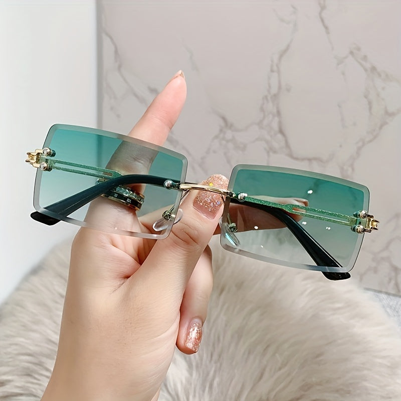 Square Fashion Glasses for Women Gradient Lens Metal Frame Climbing Party