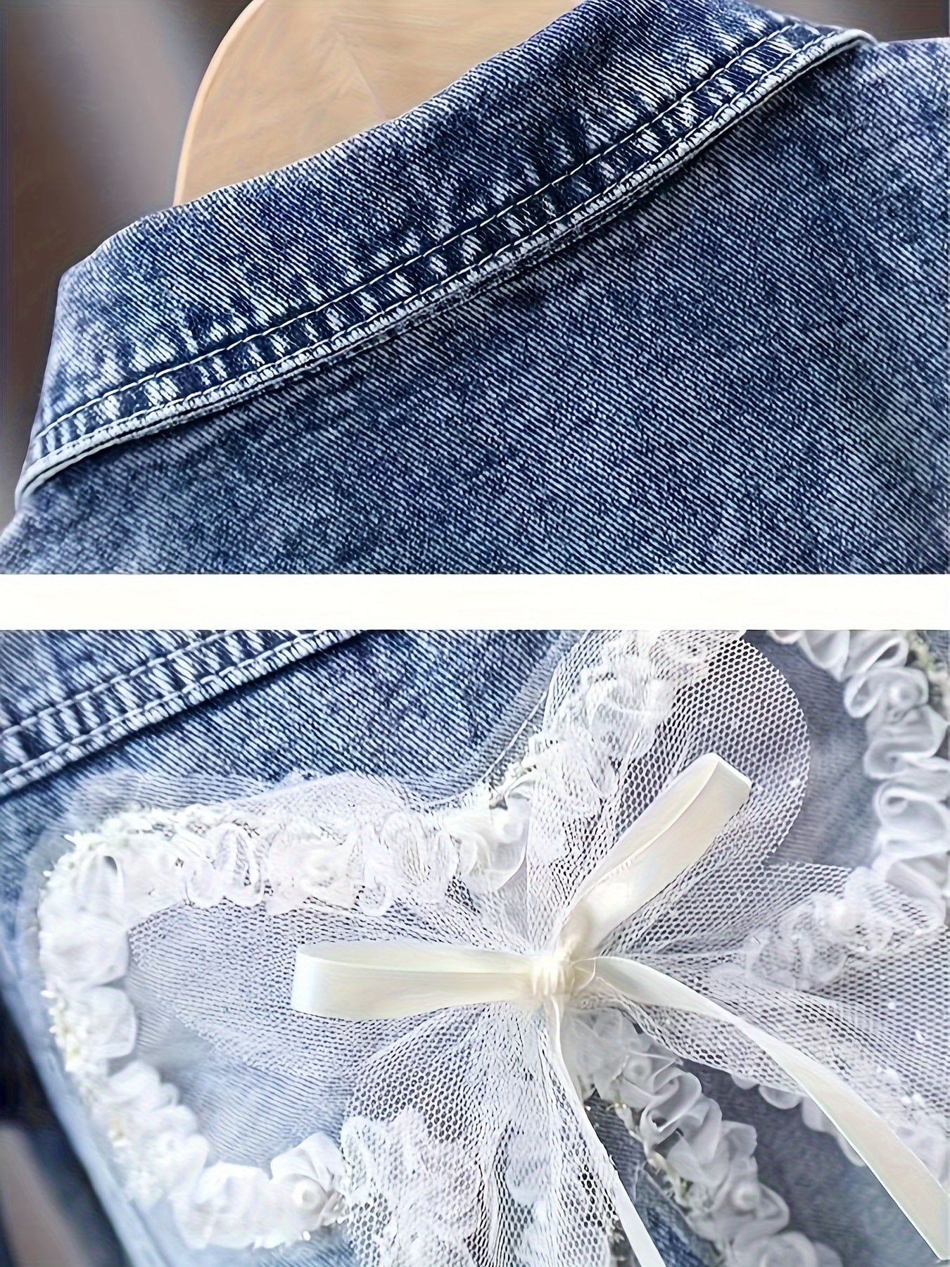 Children's Denim Jacket for Girls Long Sleeve Casual Woven Cotton Polyester