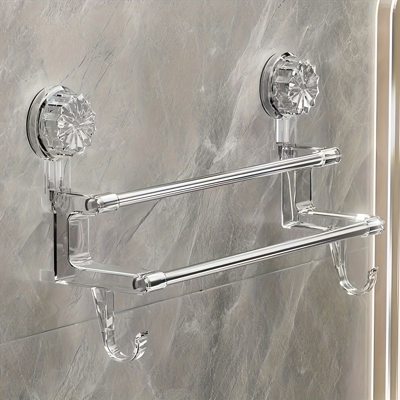 Dual Rod Towel Rack with Suction Cups No-Drill Wall Mount Bathroom Storage Metal Hanging Rod