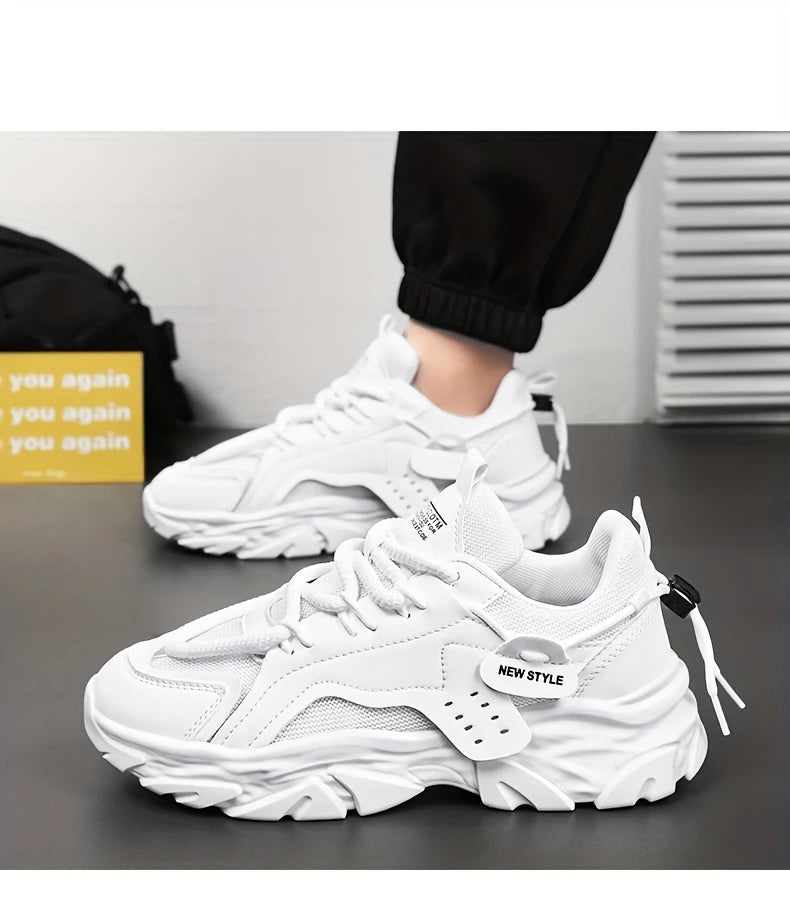Men's Solid Color Chunky Sneakers Low Top Non-Slip Lace-Up Thick Sole Casual Running Hiking Shoes