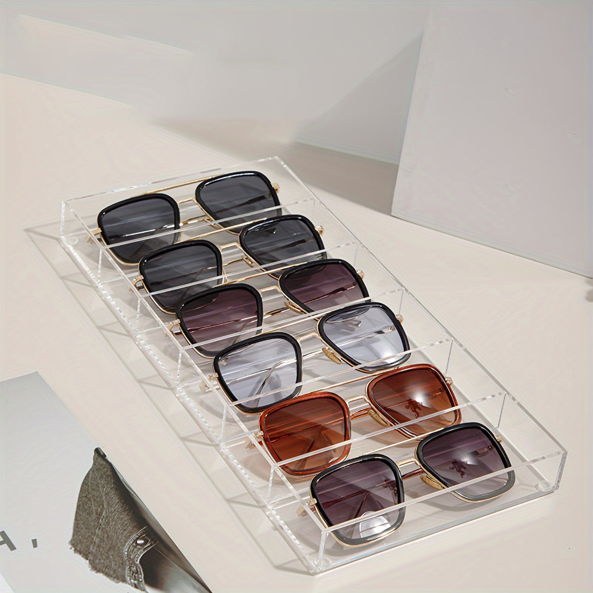 Acrylic Eyewear Display Case with 6 Compartments for Sunglasses and Glasses Storage