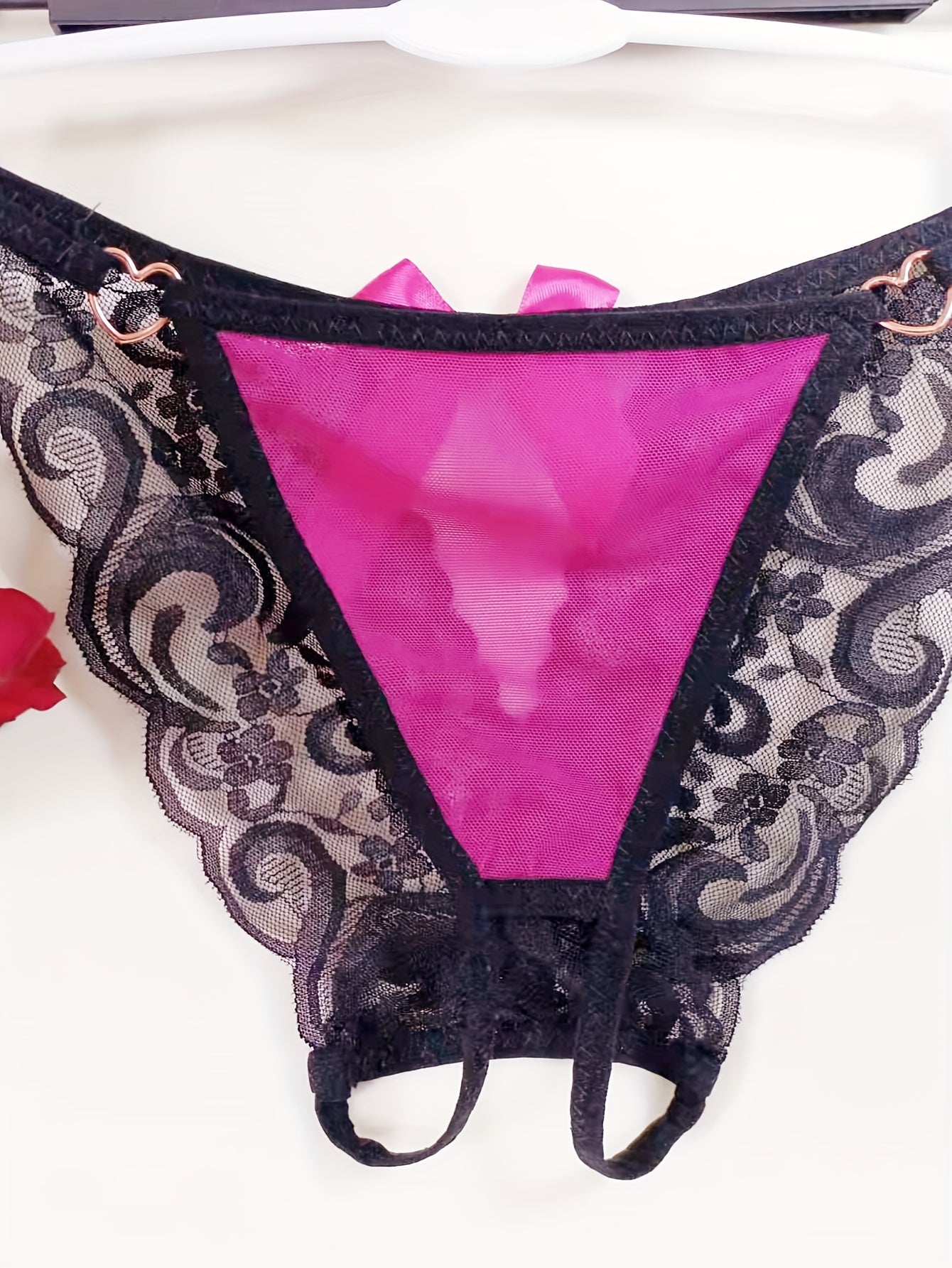 Women’s Colorblock Lace Thongs Open Crotch Panties Sexy Lingerie