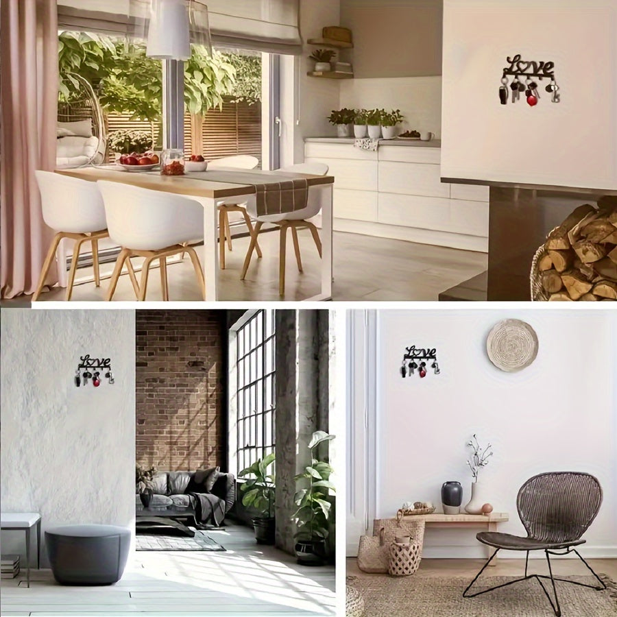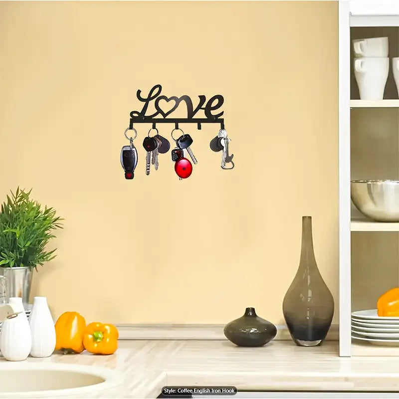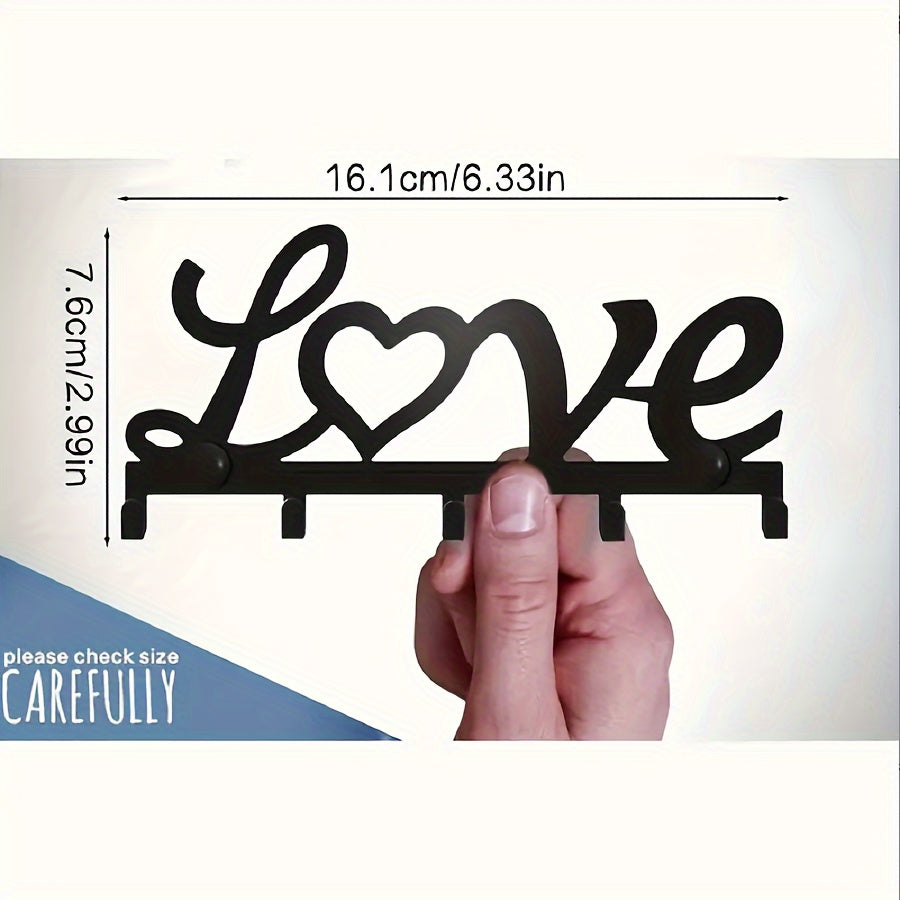 Black Metal Key Holder for Entryway Hallway Decor Easy Installation Love Theme