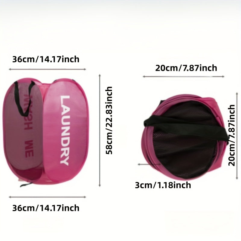 Gray Foldable Laundry Basket with "Wash Me" Print, Multi-Compartment, Portable