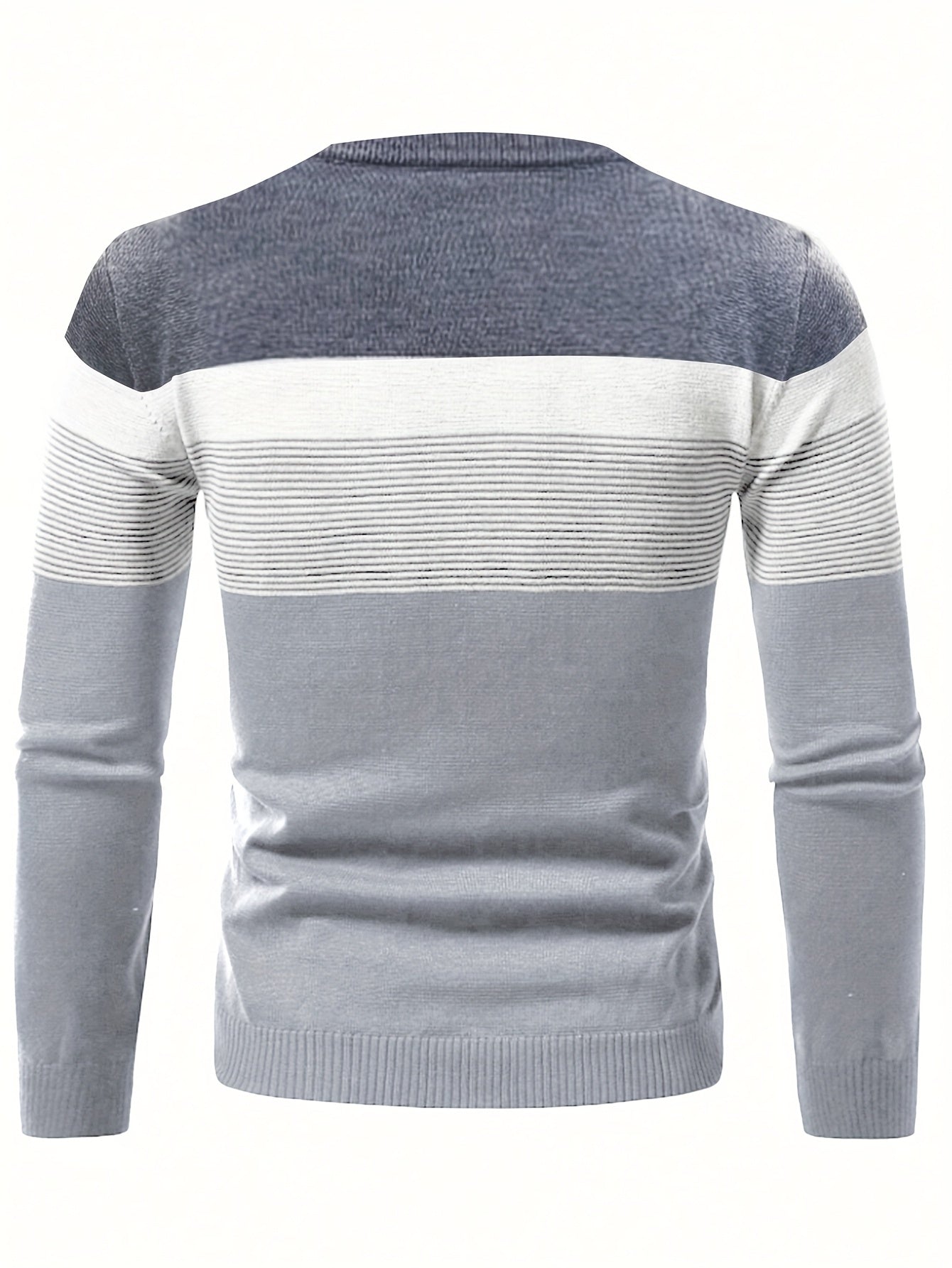 Men's Cotton Striped Crew Neck Sweater Long Sleeve Fall Winter Casual Knit Pullover