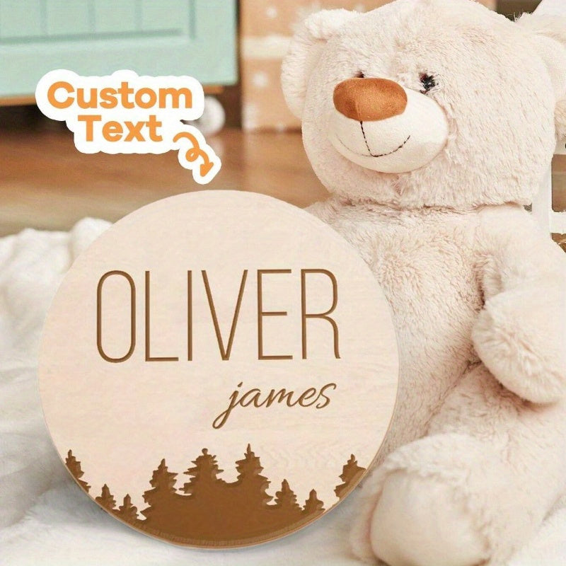 Personalized Round Wooden Sign Birth Keepsake White with Name and Footprint