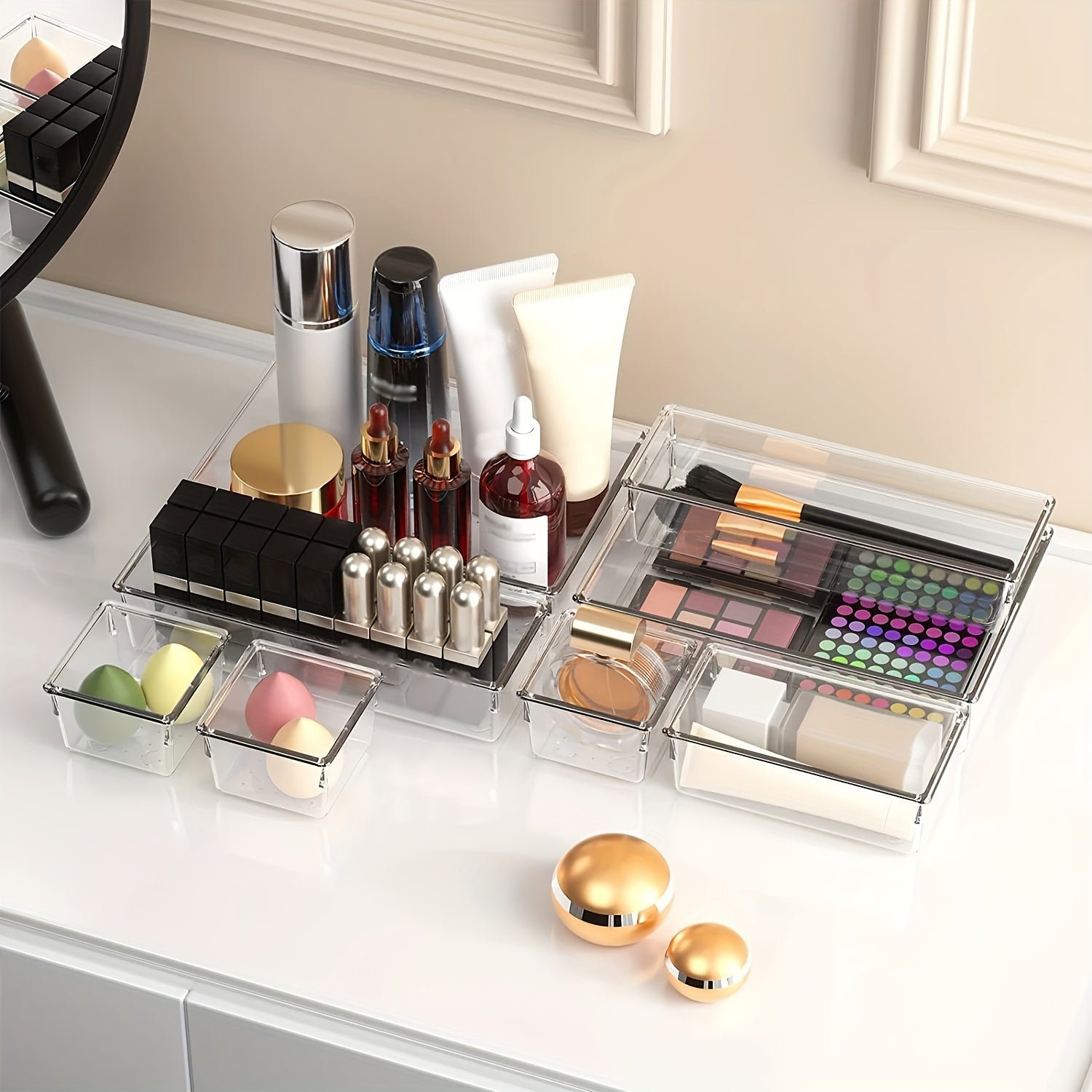 Set of 10 or 20 Plastic Drawer Organizer Trays in 4 Sizes for Dresser, Makeup, Kitchen, Office