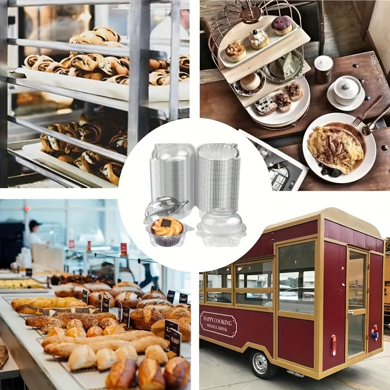 Disposable Plastic Pastry Packaging Boxes for Muffins and Cakes, 25-100 Pack